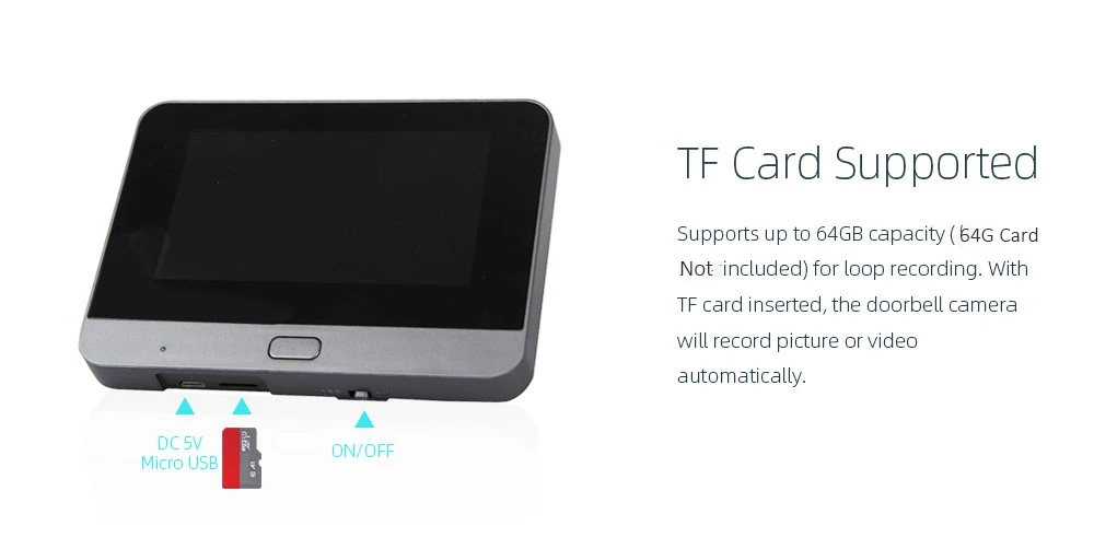 - Support Max 64G SD Card(Not Include) and Cloud Storage for alarm recording