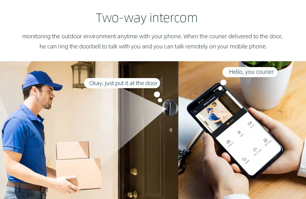 - Two Way Audio. Clearly communicate with visitor in real-time