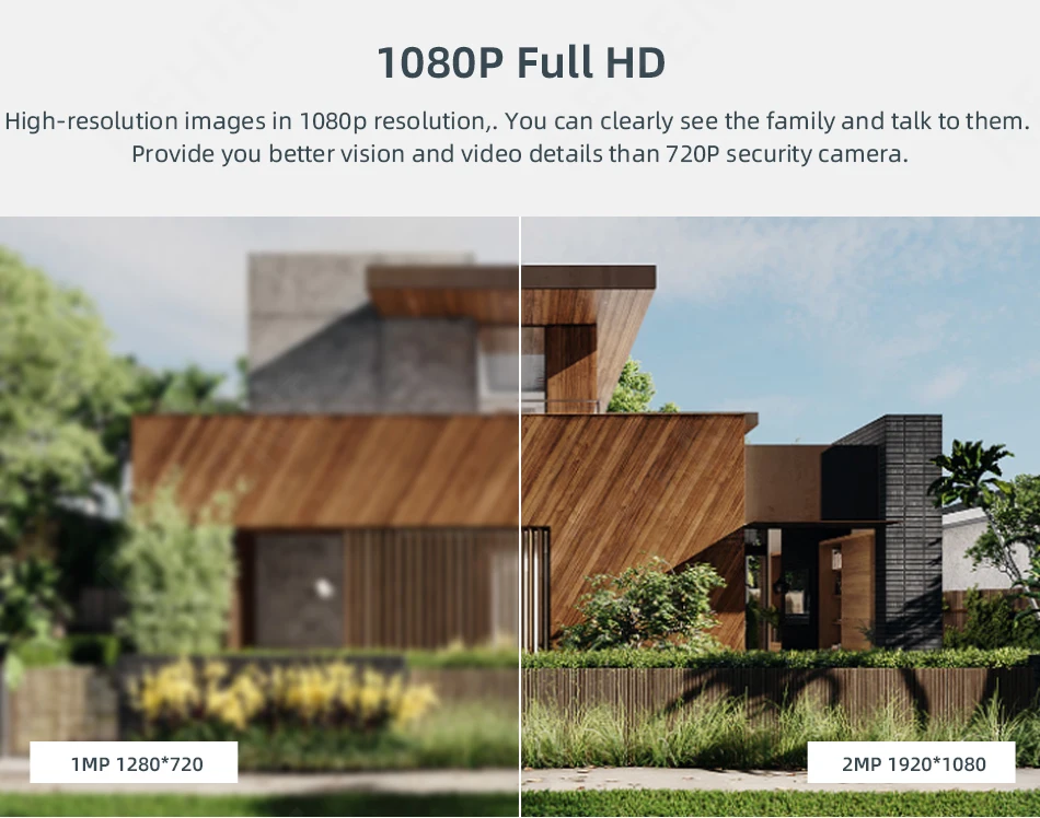 This doorbell with 1080P camera, camera with 120° wide view angle and motion detection distance up to 6M.