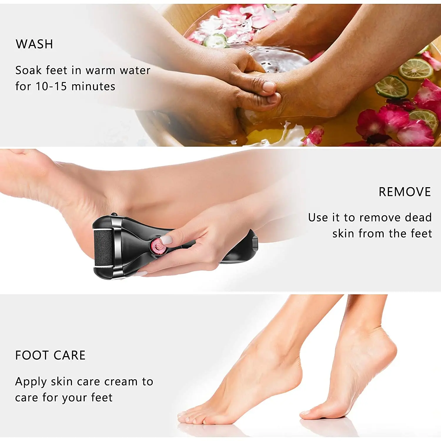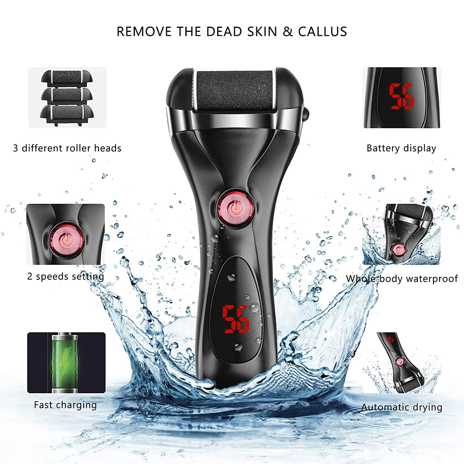 【IPX7 waterproof and safe】 The electric foot file has a waterproof design, the whole body can be rinsed under running water. It can be used to do a perfect foot care when you get out of the shower. It is recommended to dry your feet before use, and then use it for best results. Note: do not immerse in water for a long time.