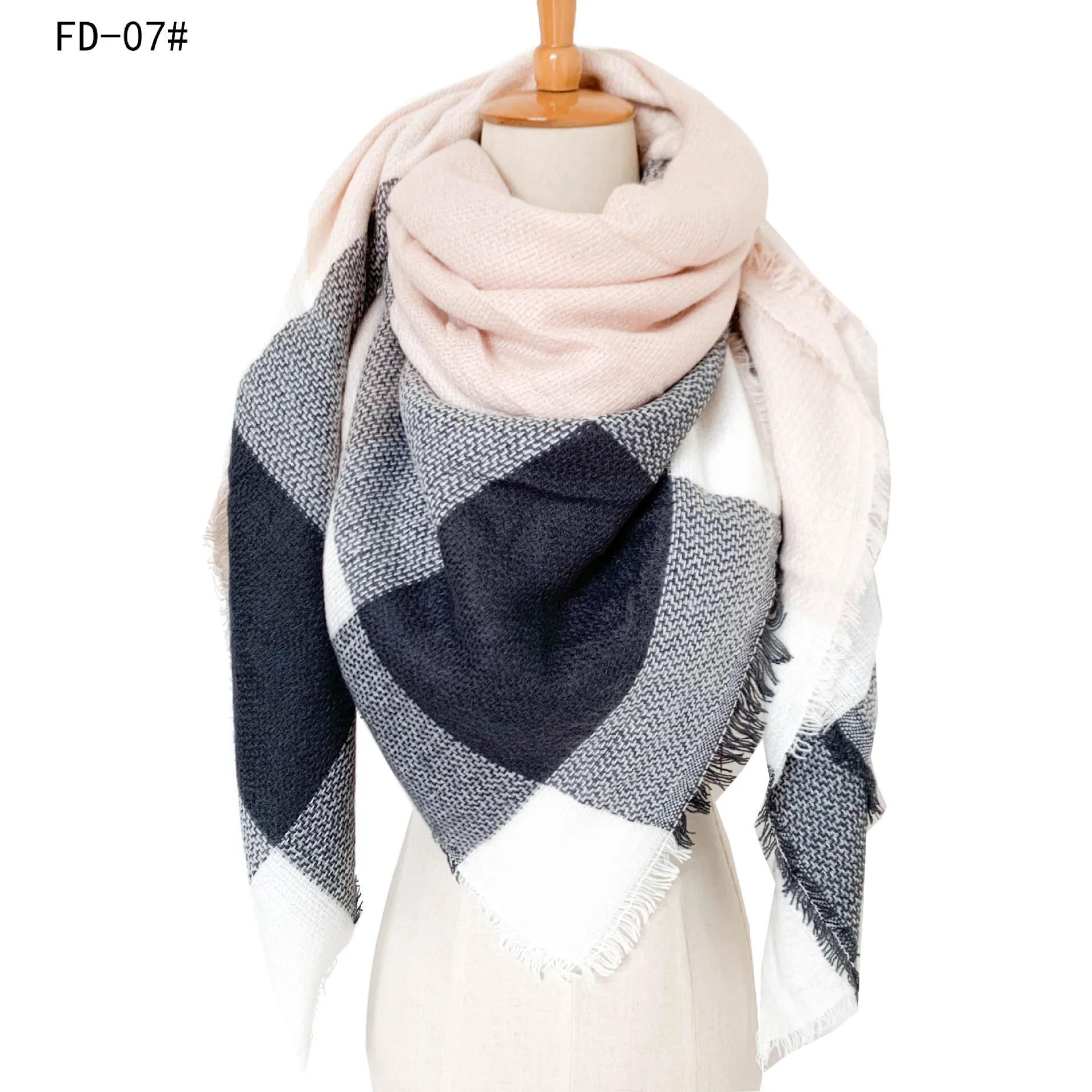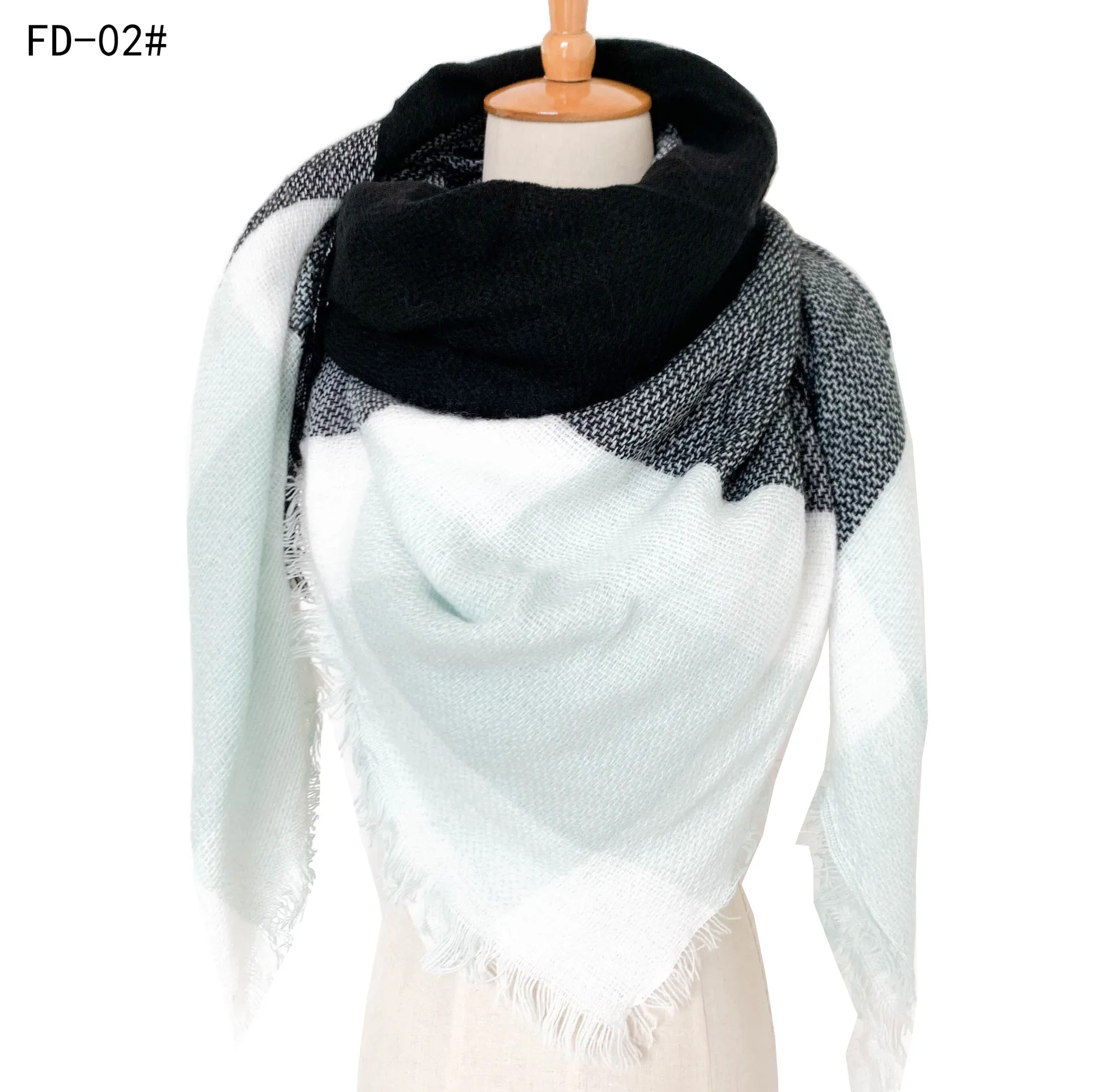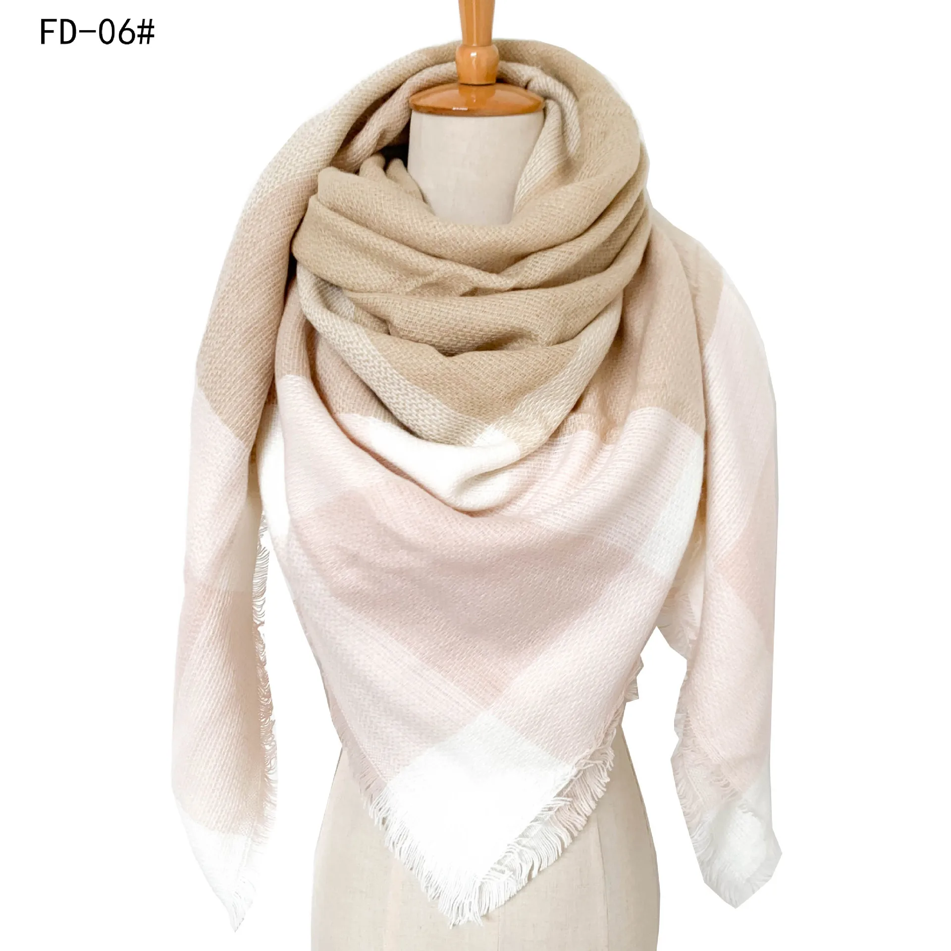 2024 New European and American Autumn and Winter New Yellow Grey Imitation Cashmere Large Grid Square Scarf, Women's Large Size