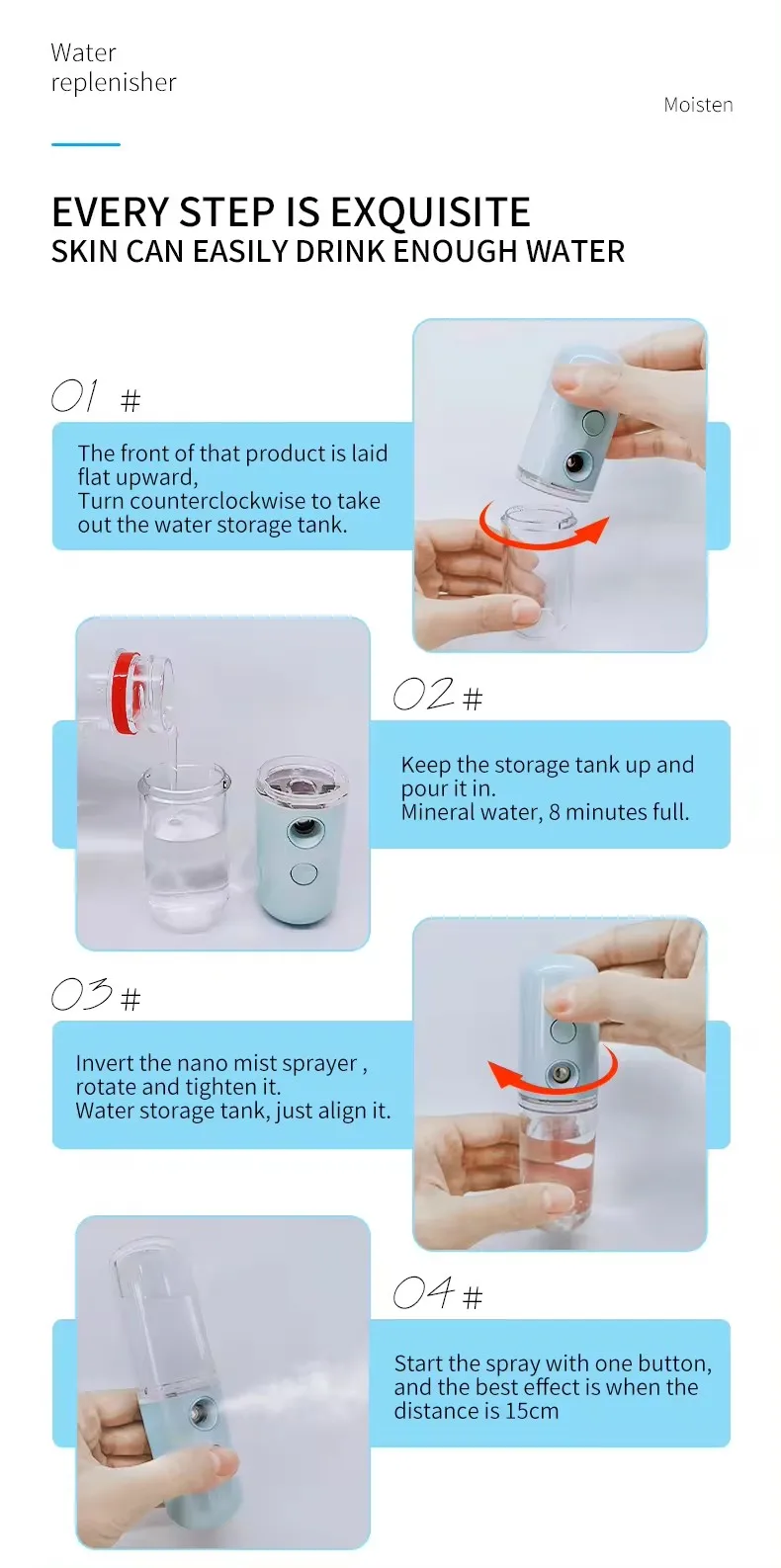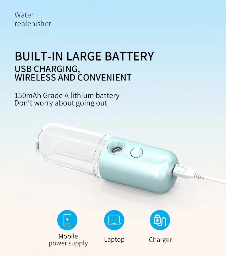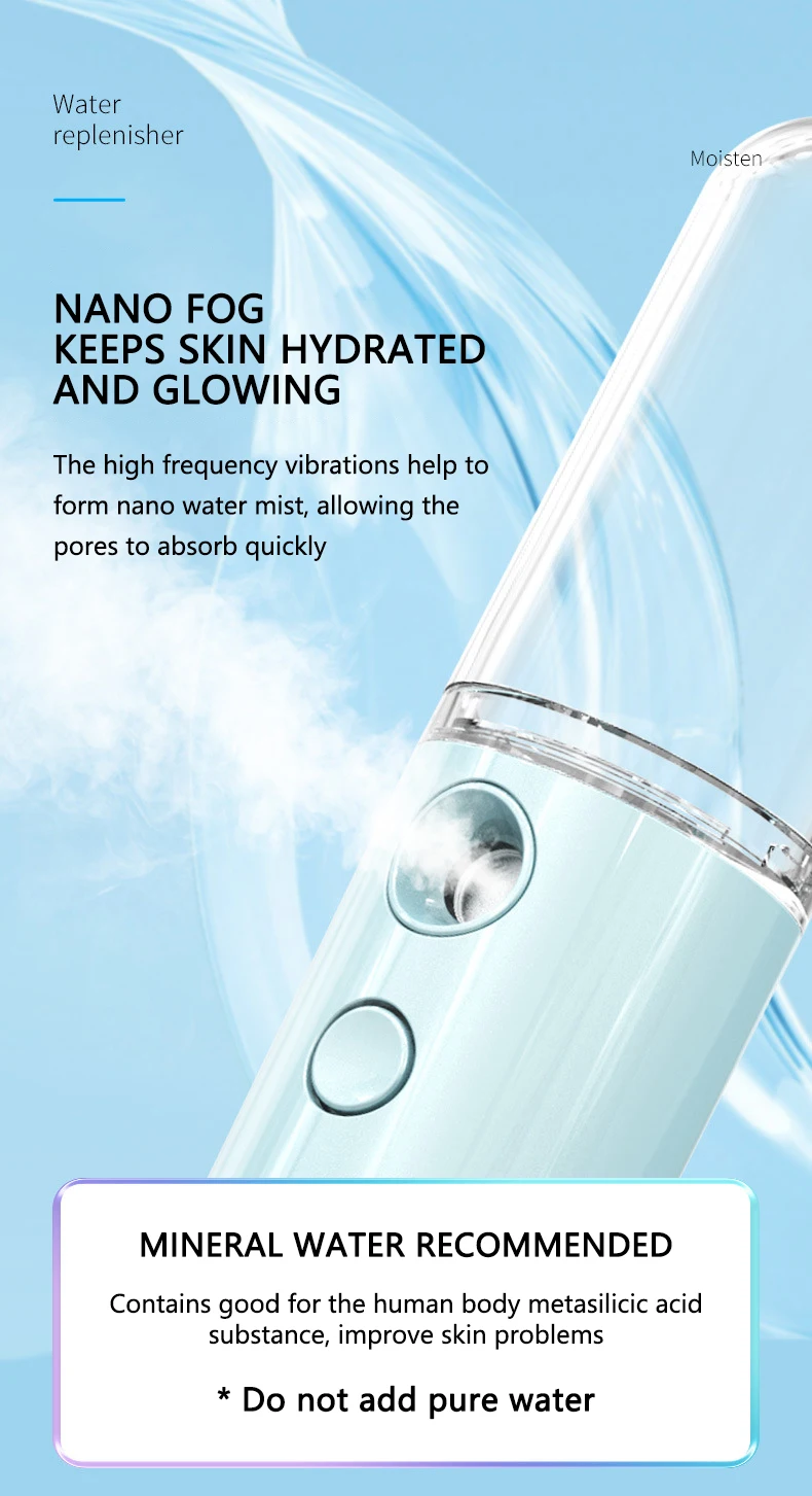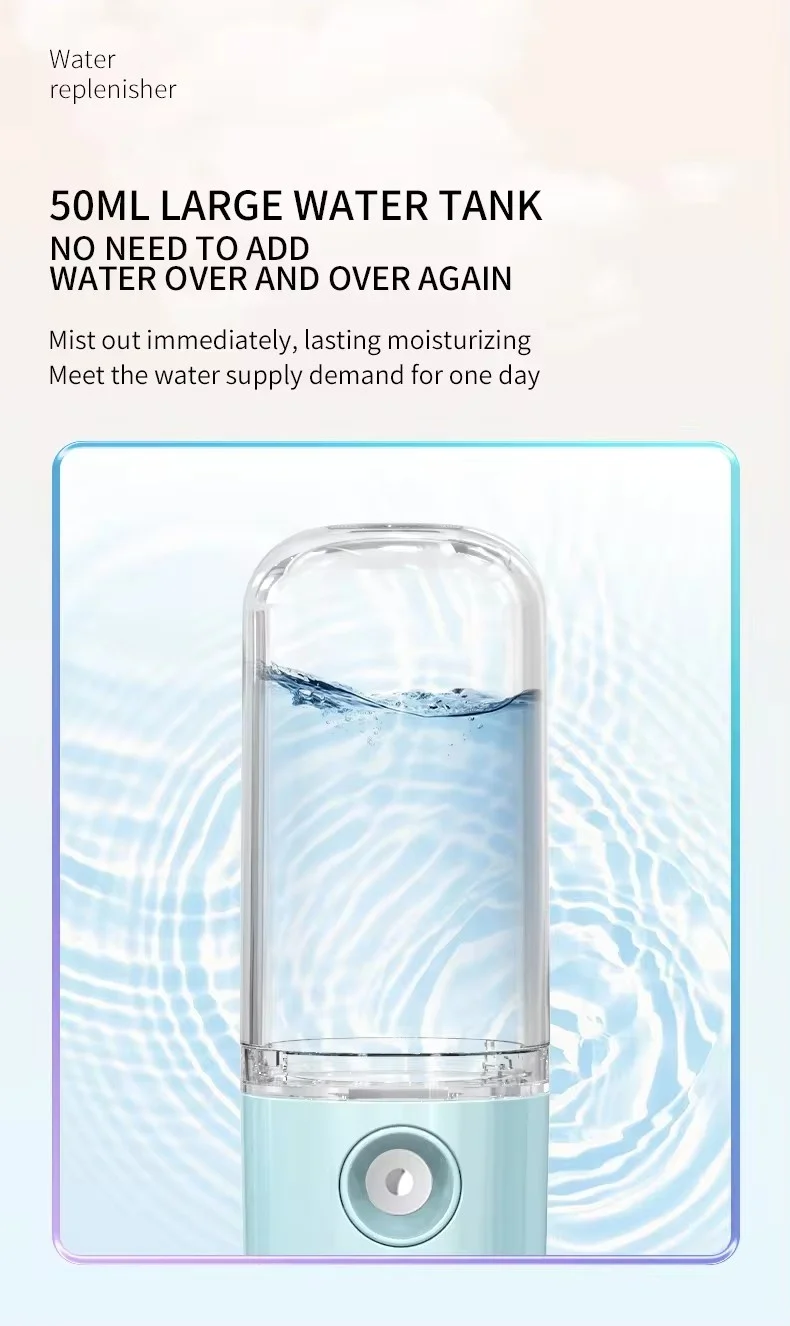 50ML Enlarged Water Tank Mini Humidifier Portable Cool Mist Maker Facial Steamer Nano Facial Sprayer For Face Care