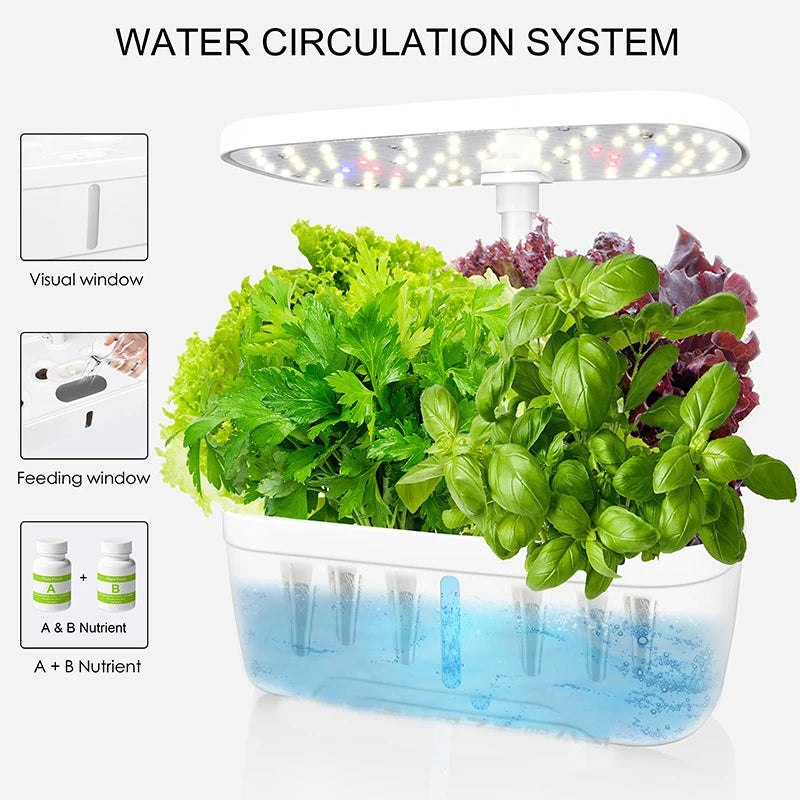 6-Plants Indoor Hydroponics System Herb Planting Pot/Black Planters Kit Led Plant Lamp Soilless Cultivation Vegetable Box