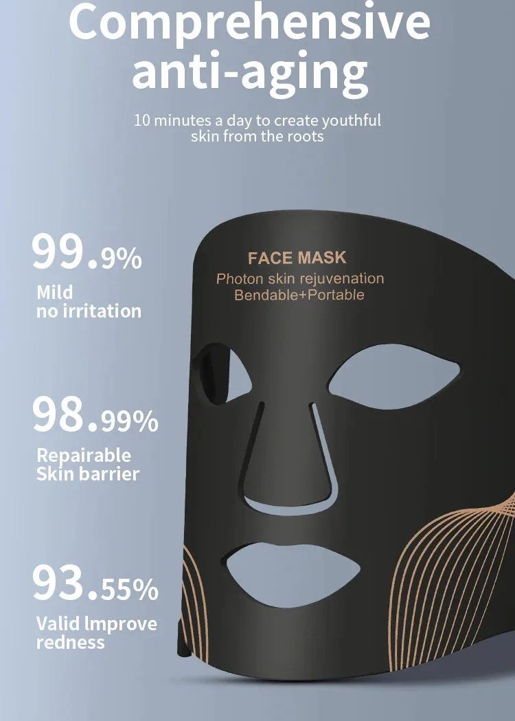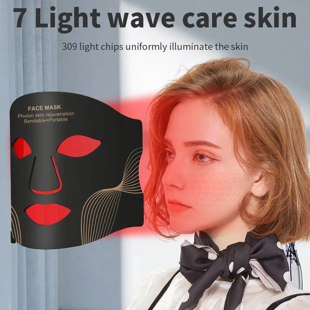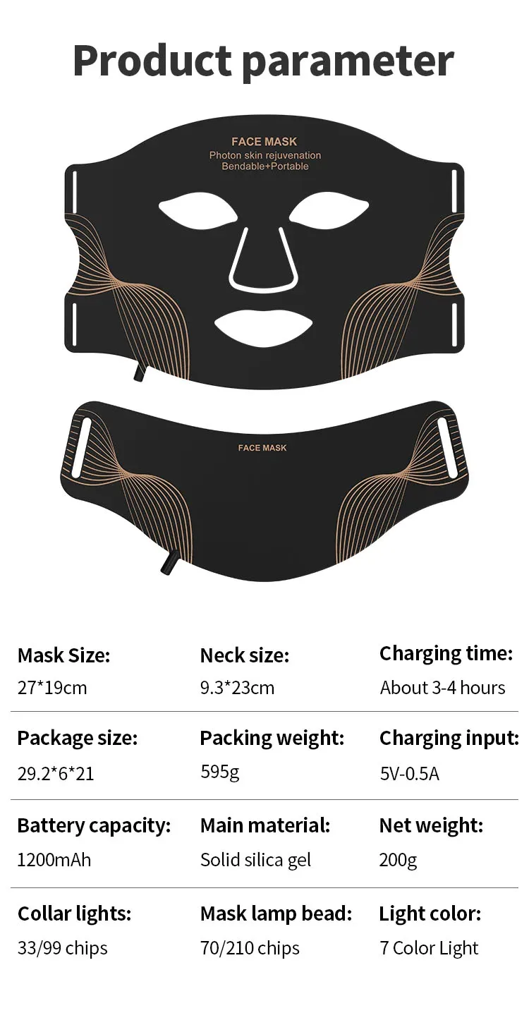 7 Color Photon Silicone Face LED Mask with Neck Whitening Skin Acne Blemish Firming Skin Deep Repair Remove Wrinkles Beauty Mask