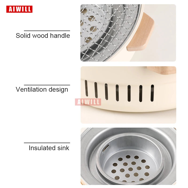 AIWILL Barbecue Grill Home Barbecue Outdoor Camping Charcoal BBQ Stove Grills Mesh Portable Smokeless Barbecue Grill Pan