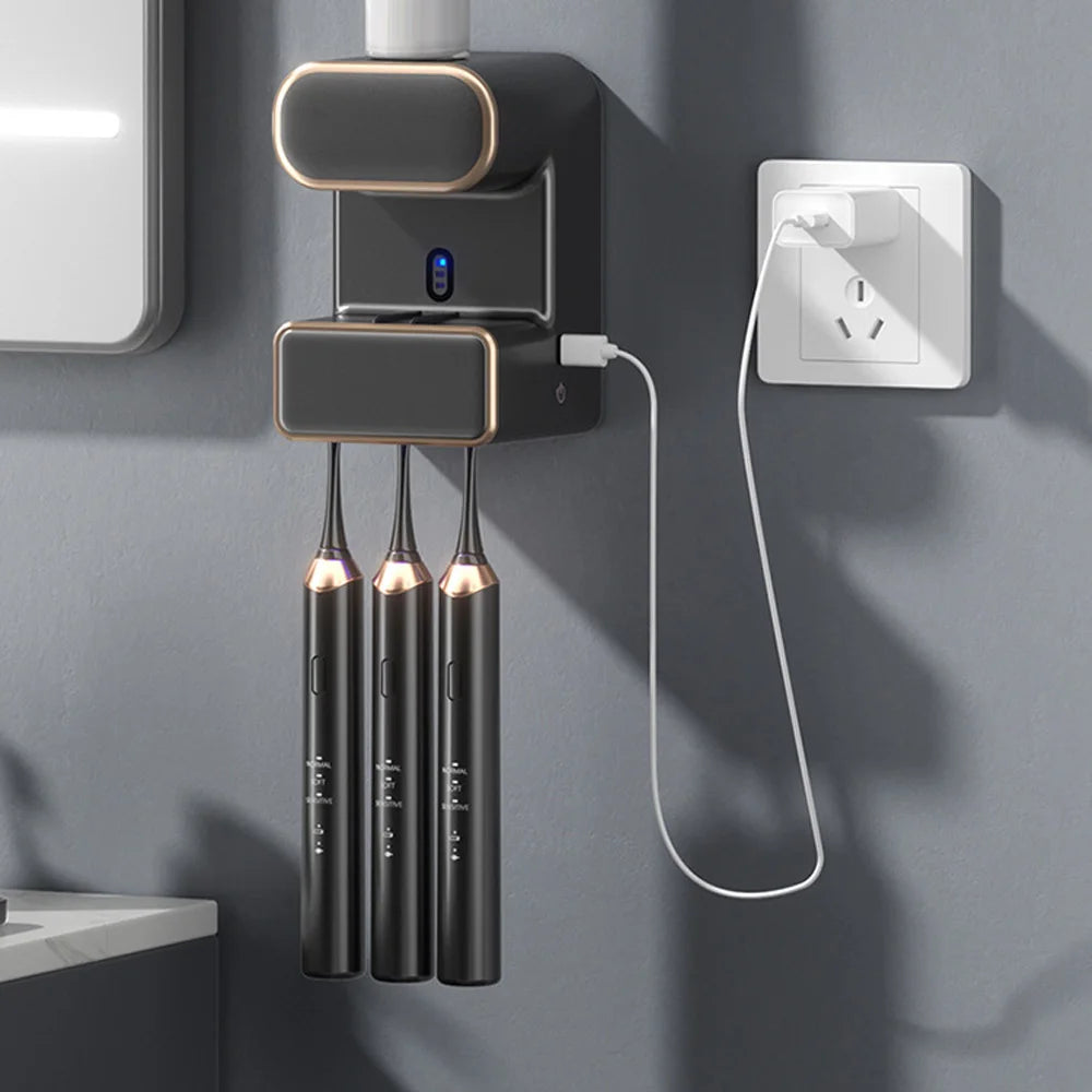 Automatic Sensor Toothpaste Dispenser with 3 Toothpaste Slots Wall Mounted Electric Toothpaste Squeezer for Bathroom Accessories