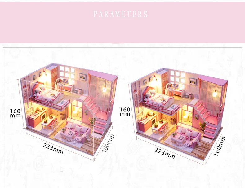 2.Photo shows finished dollhouse,but you receive are spare parts,build by yourself !