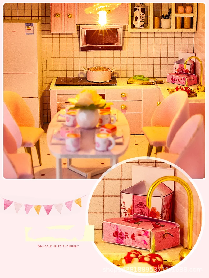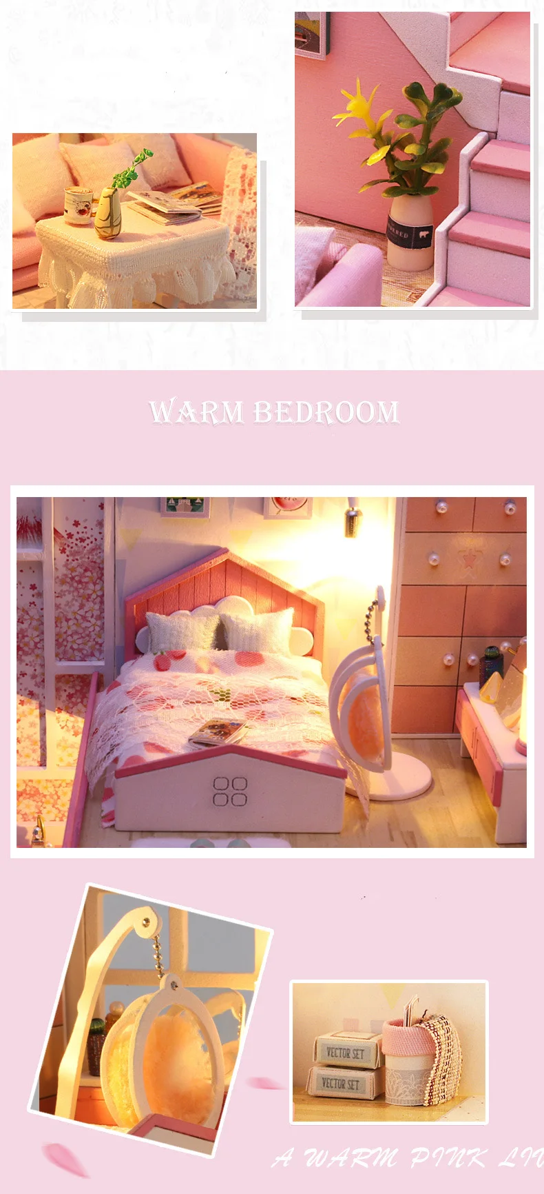 Doll House Miniature Furniture Diy Wood Dollhouse Miniatures Children Toys Girl Birthday Gifts Diorama Christmas Toy Gift