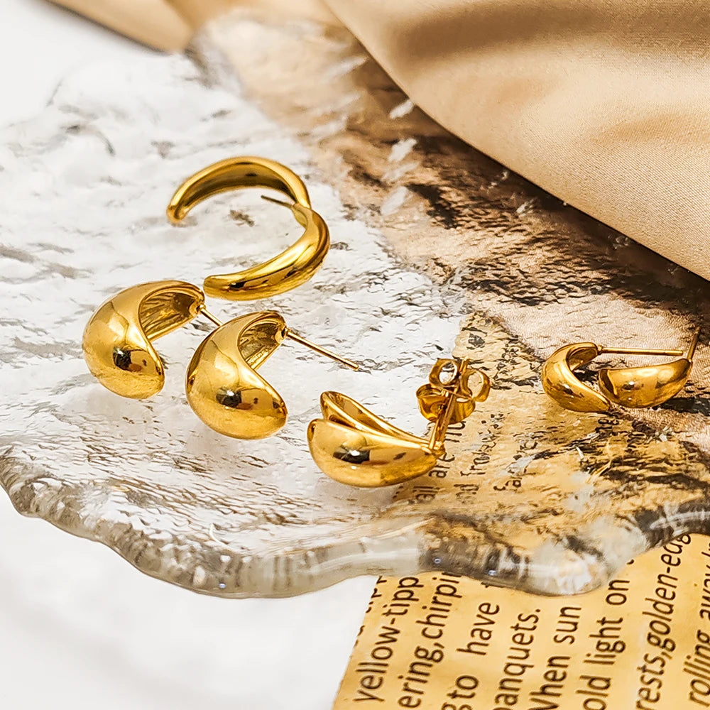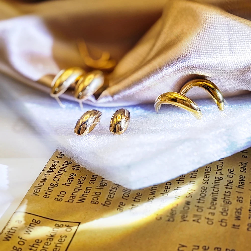 eManco Steel color Gold color Simple Women Chunky Hoops Earrings Gift Fashion Jewelry Stainless Wives Round Smooth Thick Hoop