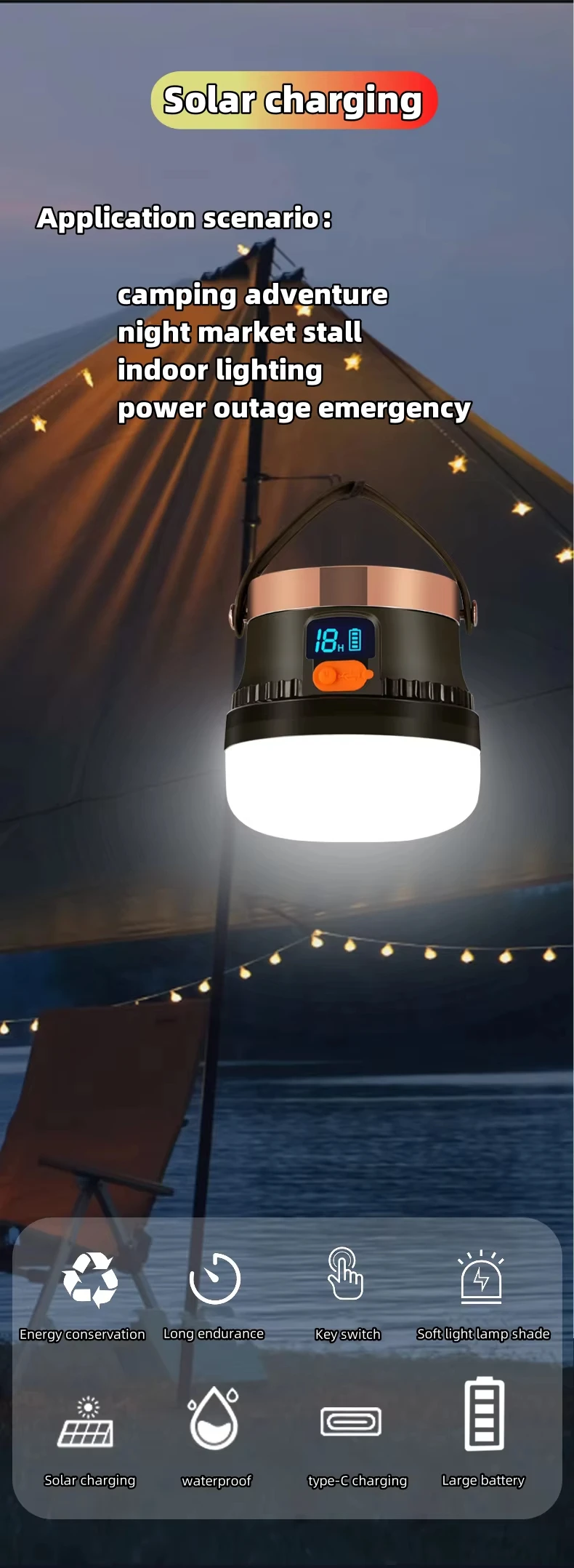 High Power Solar LED Camping Lantern Rechargeable IP65 Emergency Power Bank Led Outdoor Camping Equipment for Camping Fishing