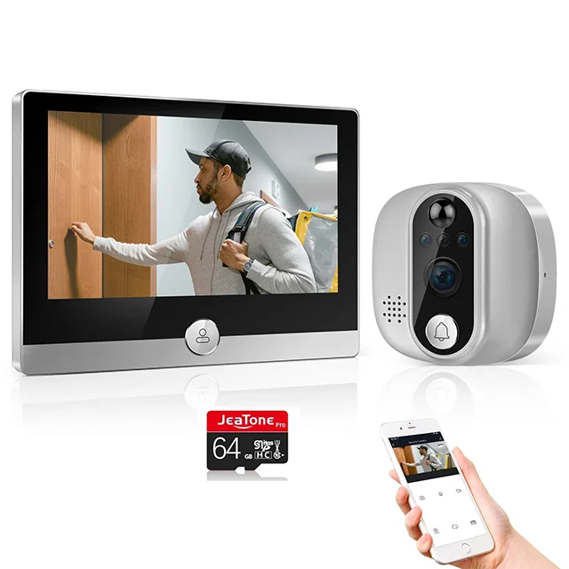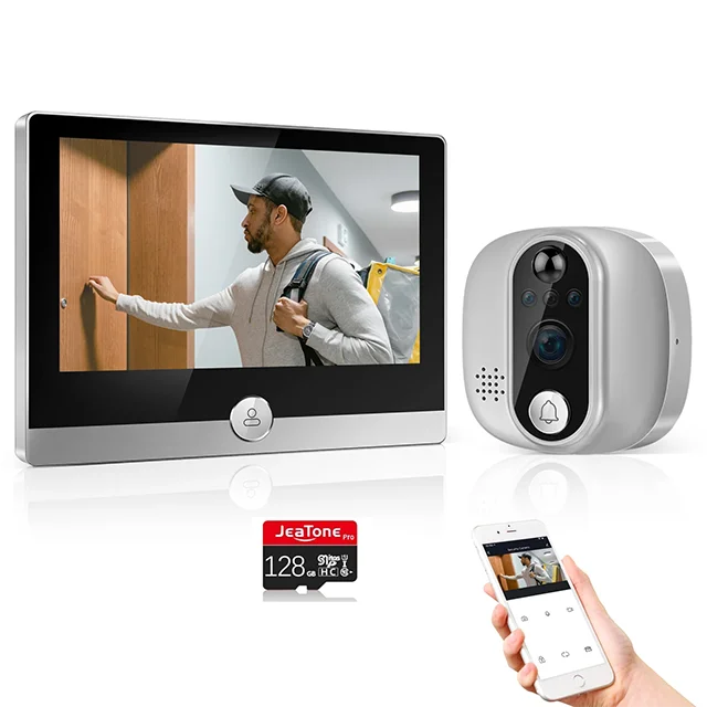 Jeatone Alexa Tuya Smart WiFi Video Peephole 1080P/158° Doorbell Camera For Home 4.3" LCD Screen 24H PIR Movement Detection Eye