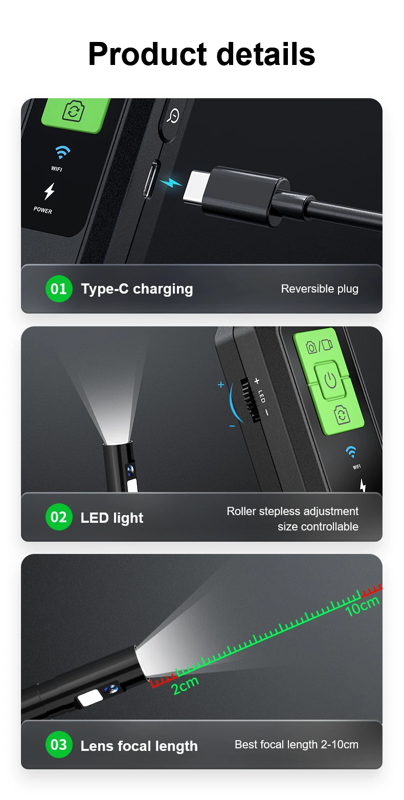 For Daily Use: Air Conditioning, HVAC Inspection; Underwater & Bathroom Pipeline, Wall Inspection; Water Leakage or Blockage Troubleshooting, Camping Equipment, etc.