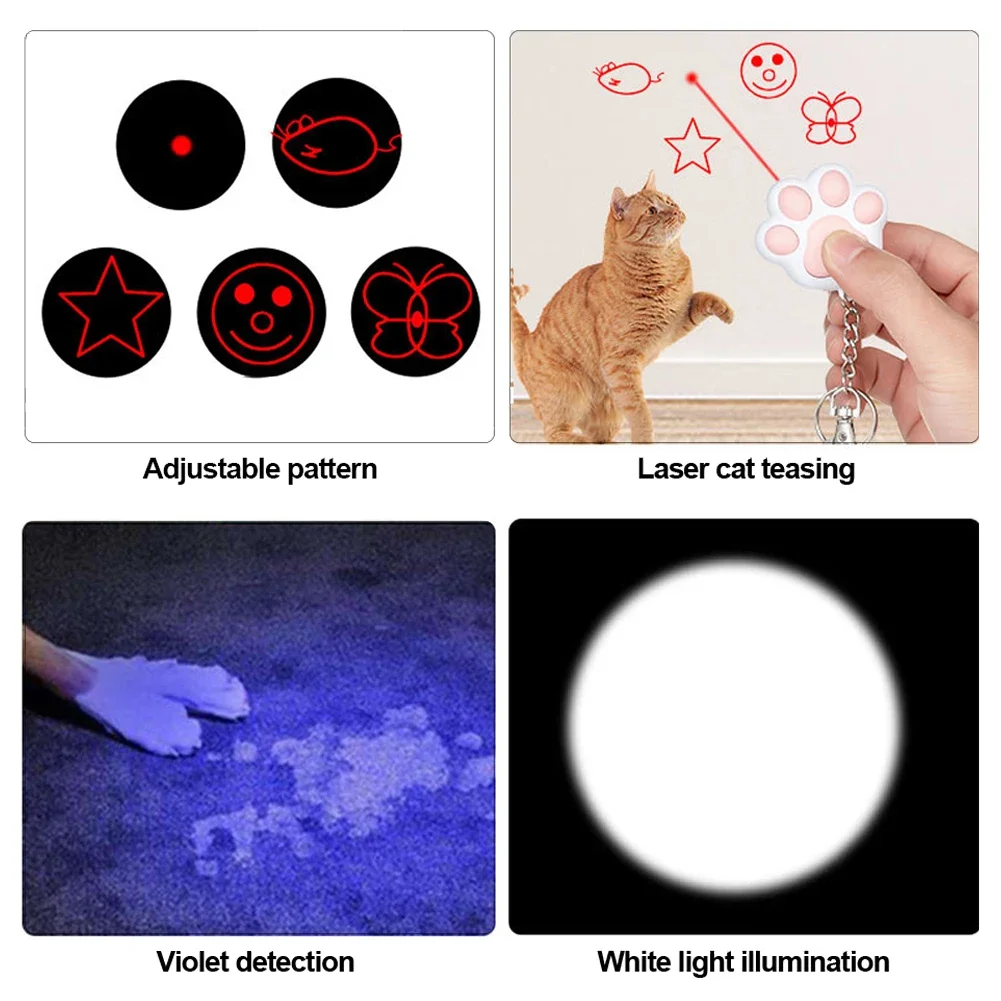 LED Cute Laser Transform Pattern Pet Cat Toys USB Rechargeable Toy Interactive Bright Animation Pointer Light Pen Training Toys