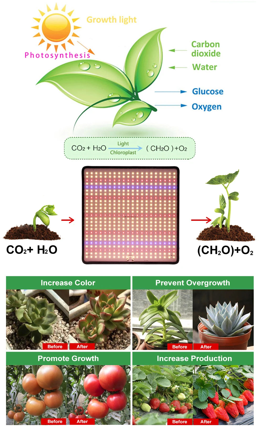 Widely used for grow tents, hydroponics, greenhouse, indoor gardening, and so on.It is suitable for almost all the plants, such as herbs, succulents, vegetables, bonsai trees, houseplant, orchid, lemon, chili, tomatoes, algae, etc.