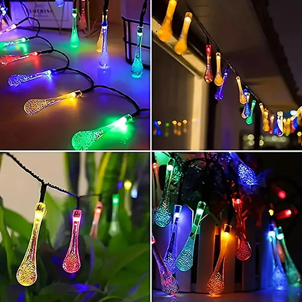 LED Light Solar Powered Water Droplet Style String Lamp Outdoor Waterproof Festival Decoration Bubble Fun Fashion