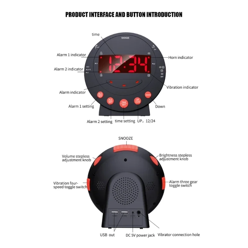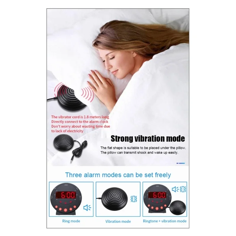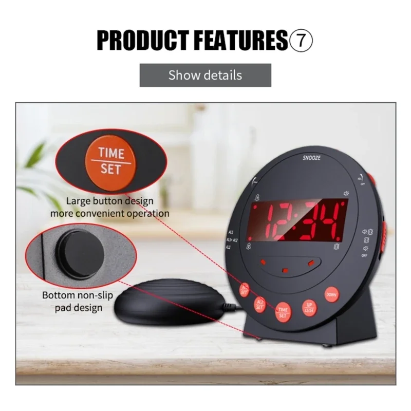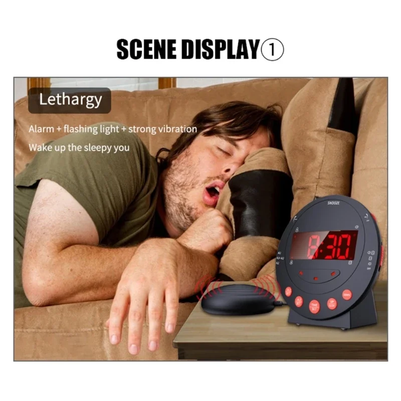 Loud Vibrating Alarm Clock with Bed Shaker for Heavy Sleepers Bedroom Electronic Alarm Clock Large LED Display