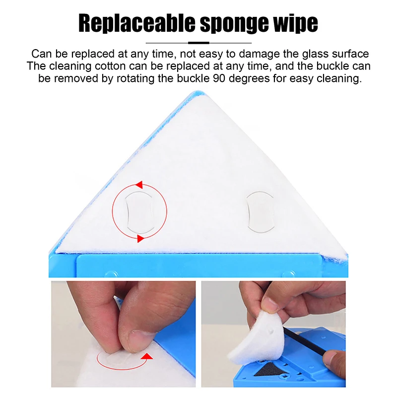 Triangular shaped magnetic glass wiper, with powerful internal magnet locking the two cleaning sides together,provide you a comprehensive cleaning to any place.