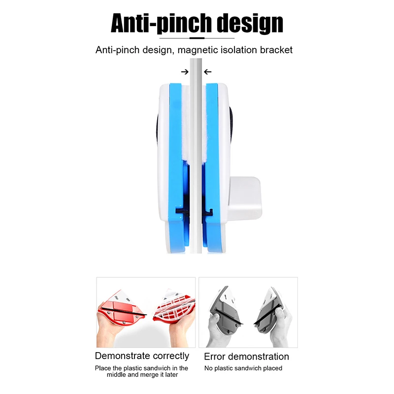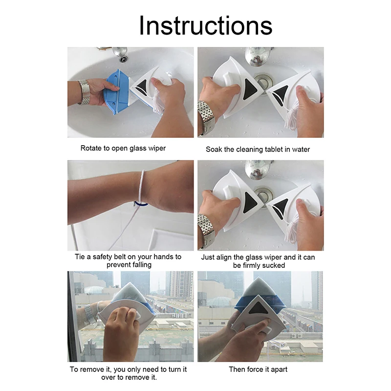 It has strong double-sided magnetic, Comes with safe anti-falling rope,when you use this magnetic glass cleaner,the rope will be tied to your hand,never falling down,provide you a stable and safe cleaning experience.