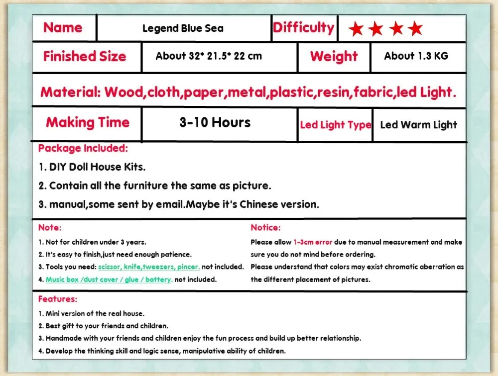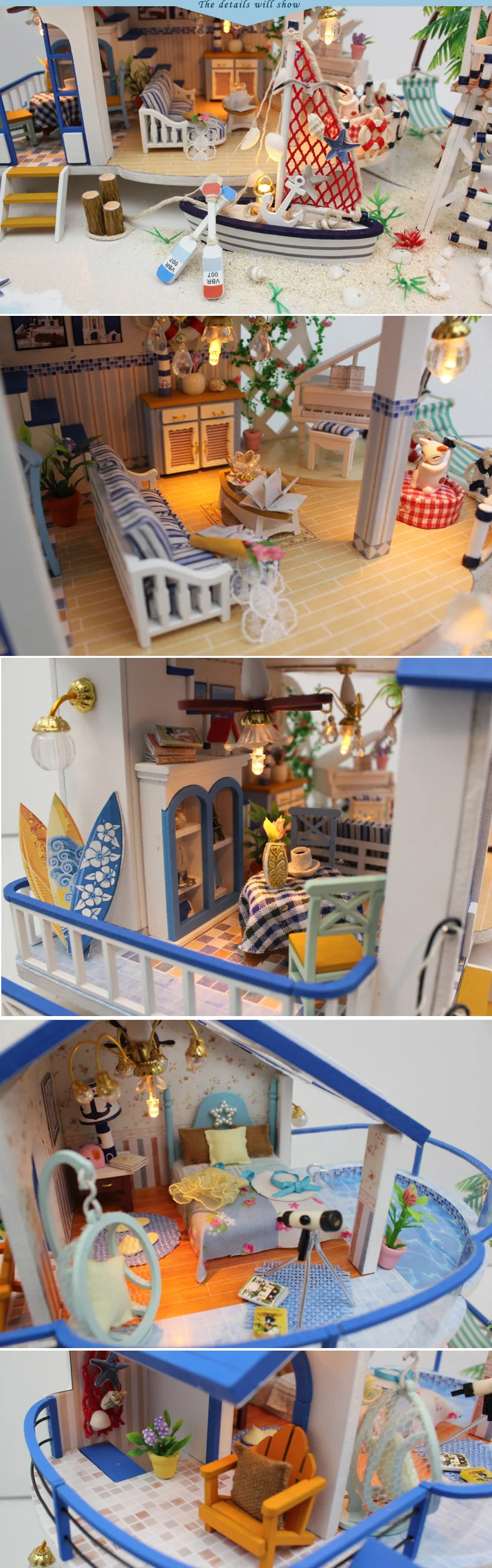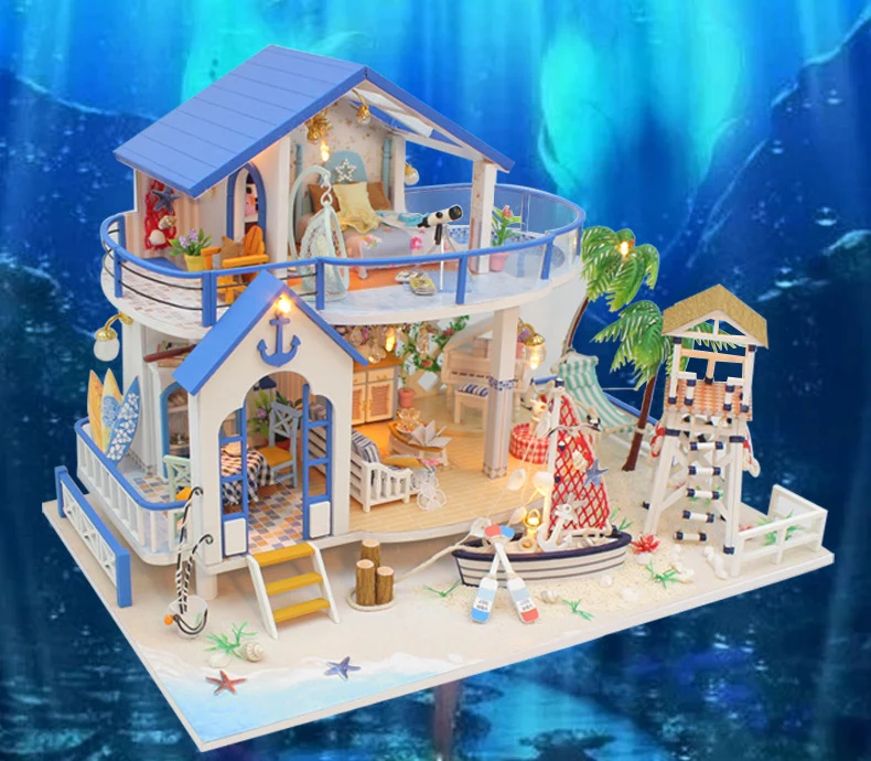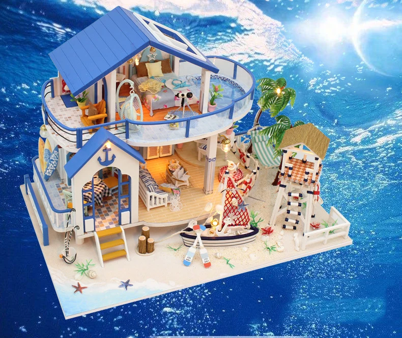 Miniature Diy Doll House Wooden Miniature Handmade Dollhouses Furniture Kit Handmade Toys For Children Girl Gift Legend Blue Sea