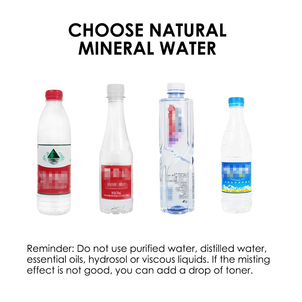 * Please use natural mineral water or water-soluble liquids, such as milk. Do not use pure water, distilled water, essential oils, hydrosols, viscous liquids, etc.