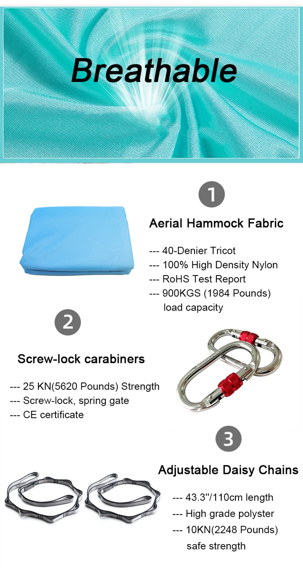 ● Fabric Material: 100% Nylon, Best Quality , Most Comfortable, Perfect for Yoga hammock swings.