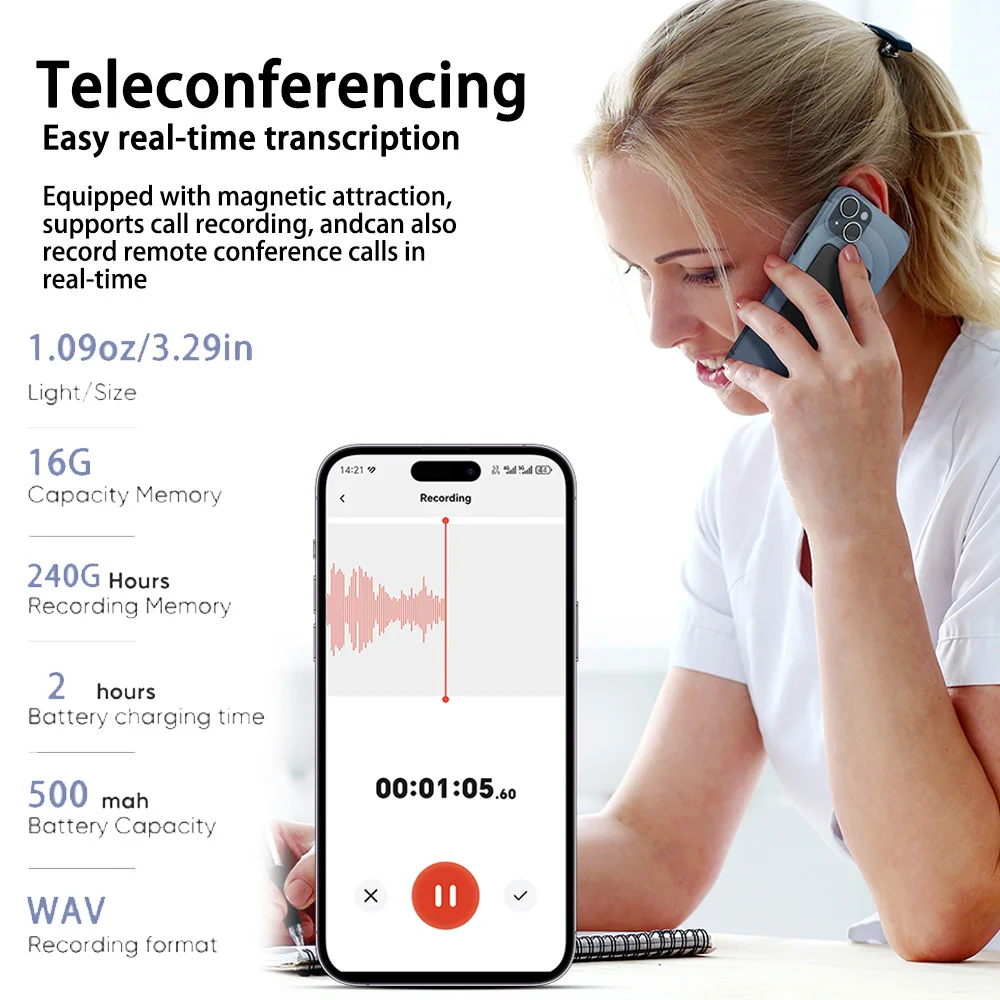 2.Easy real-time transcription of conference calls: equipped with magnetic suction, supports call recording, and can also record remote conference calls in real time.