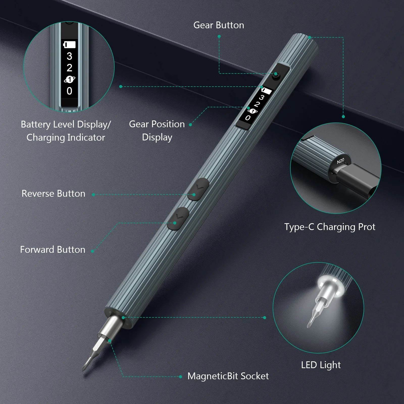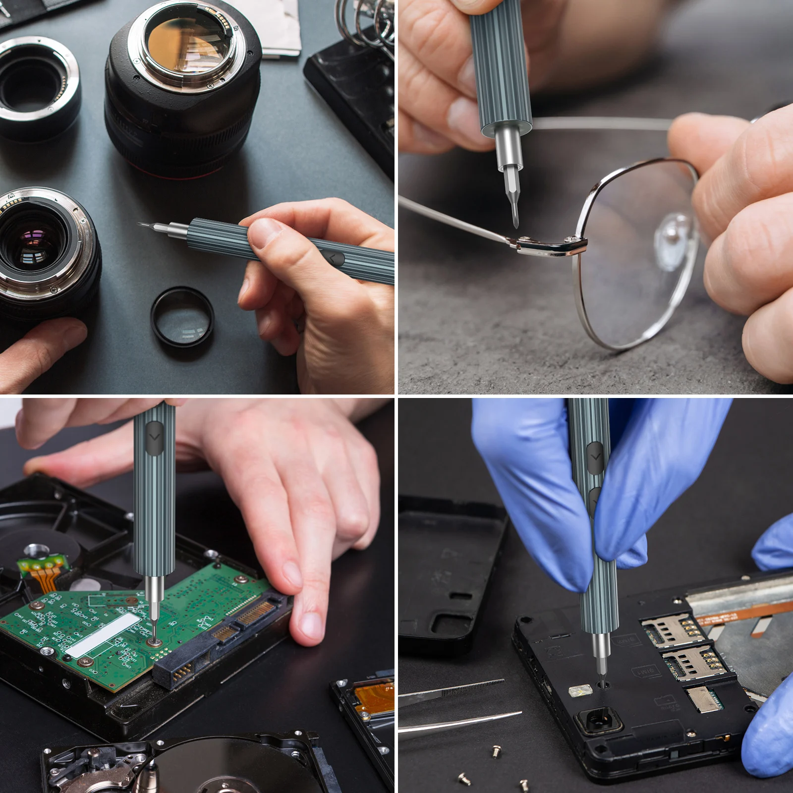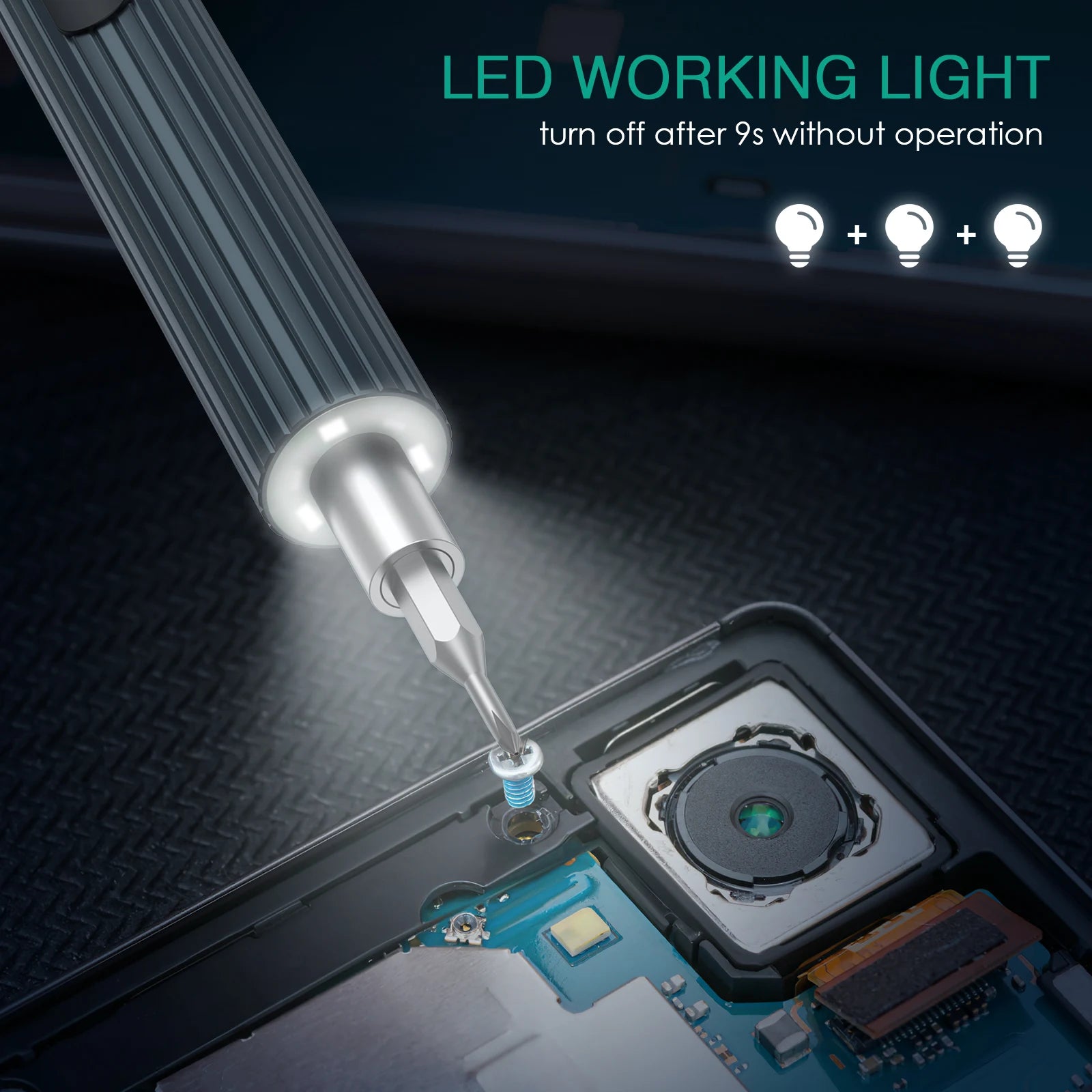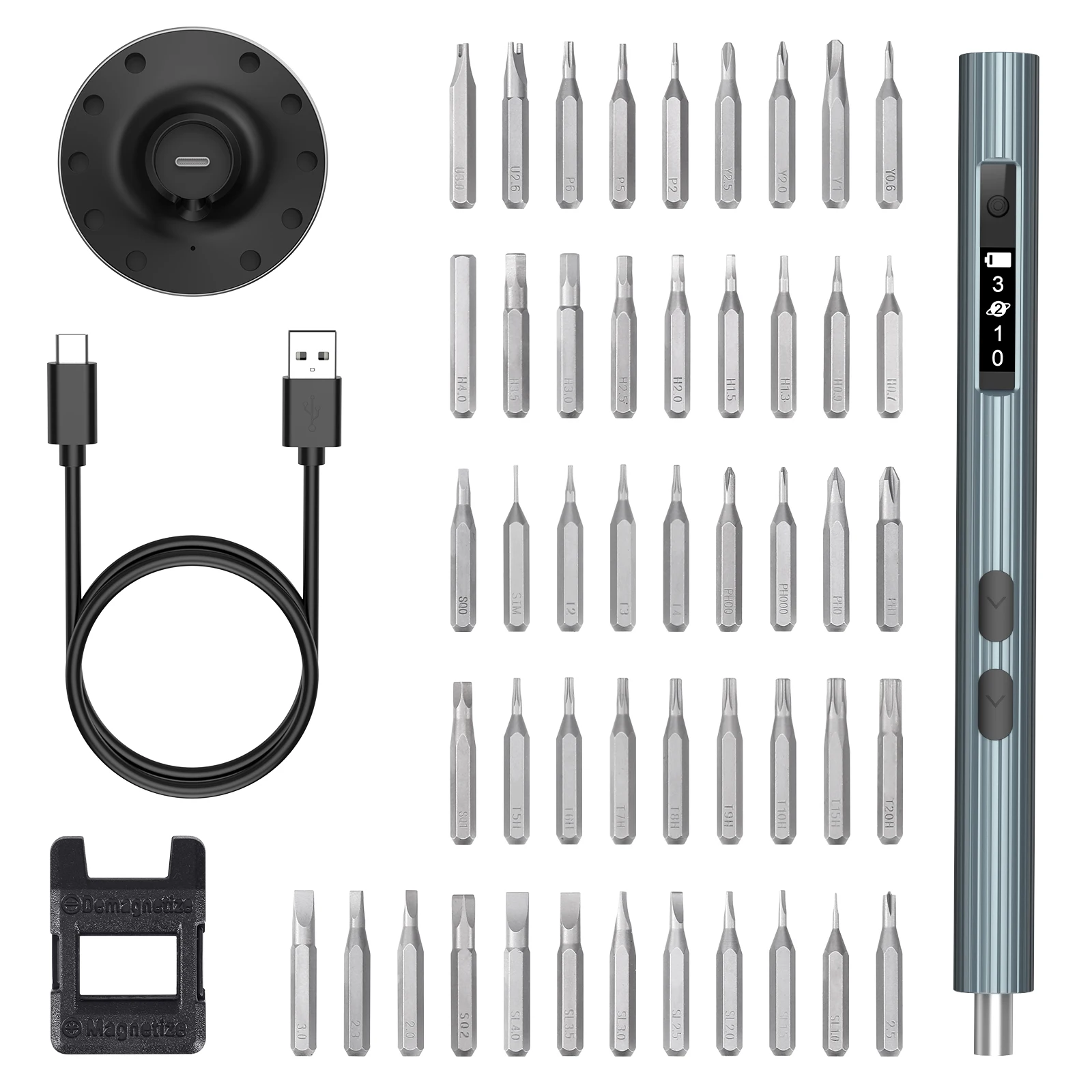 【52-in-1 Cordless Electric Screwdriver】This 52-in-1 precision screwdriver kit is equipped with 48 S2 materials commonly used bits, which can meet most of the use needs of daily life, such as repairing mobile phones, glasses and laptops. The magnetizer and the charging cable makes it more convenient to use.
