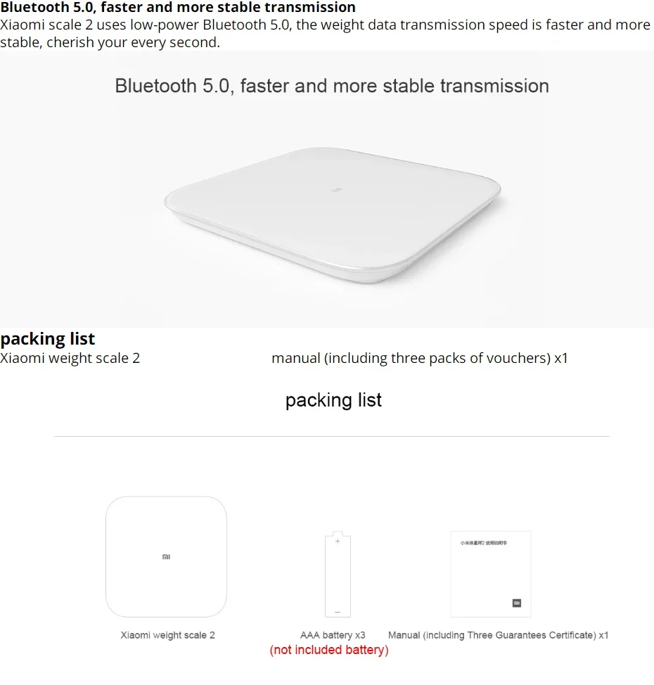 1* XIAOMI 2.0 Weight Scal(Not included Battery)