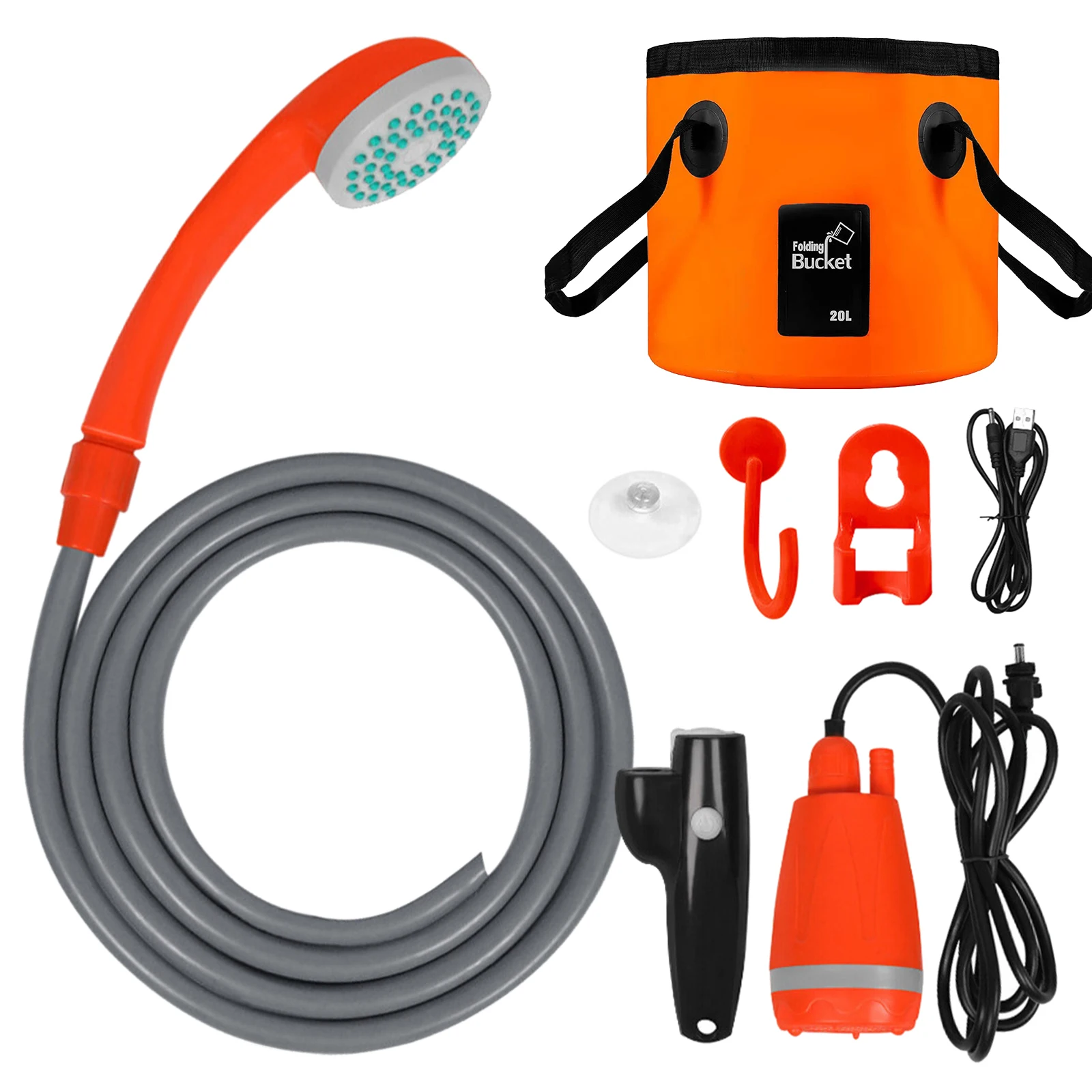 Outdoor Portable Camping Shower Kit with 2.5-3.5L/min Water Discharge 2m Hose USB Charging 30-60min Battery Life Camp Shower