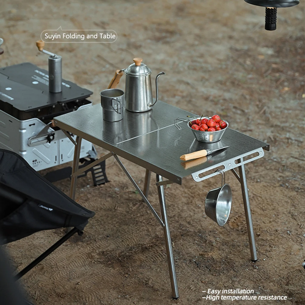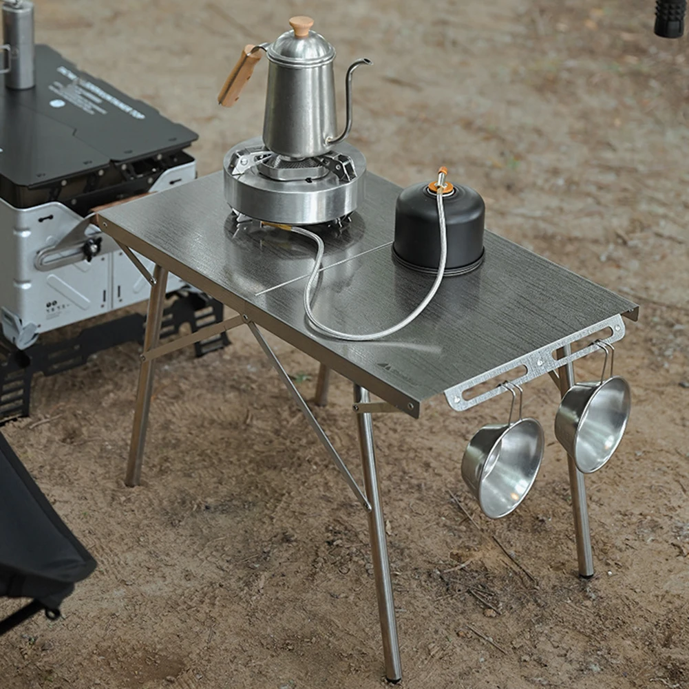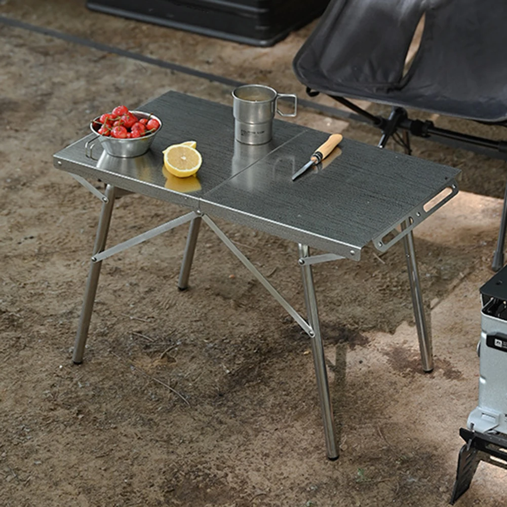 Portable BBQ Picnic Table High Temperature Resistant Stainless Steel Foldable Table Strong Load-bearing Camping Picnic Furniture