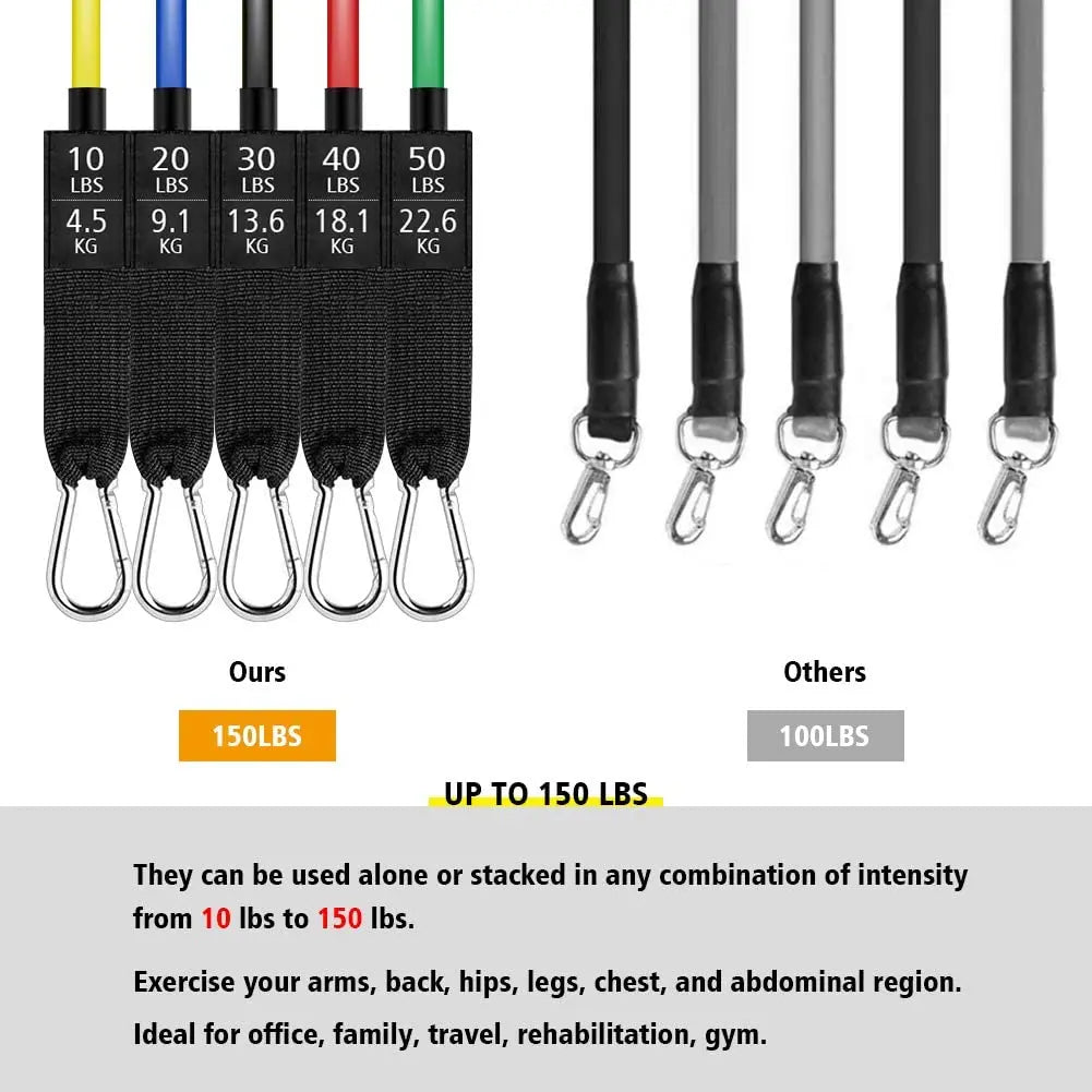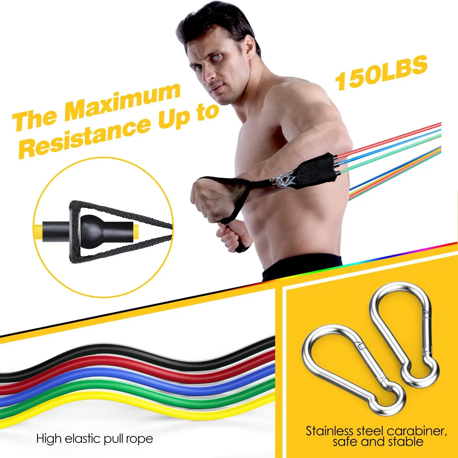 Resistance Bands Set (11pcs-150LBS), Exercise Bands with Door Anchor, Handles, Waterproof Carry Bag, Legs Ankle Straps for Resistance Training, Physical Therapy, Home Workouts