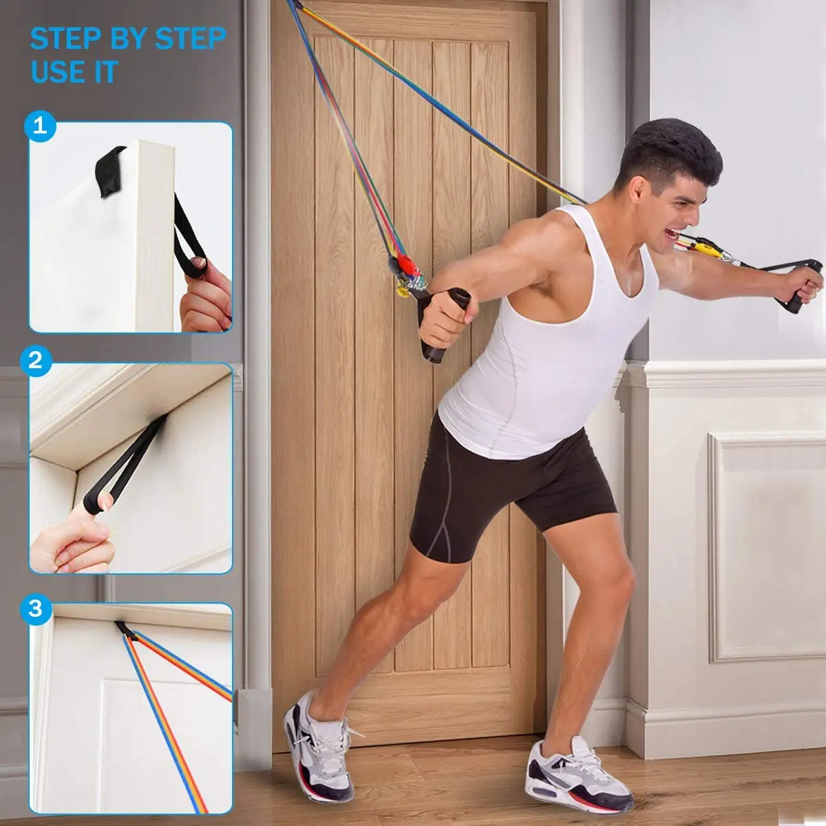 ·Personal home gym: Our resistance band set includes five exercise bands, one door anchor, two cushioned handles, carrying case and user manual to allow you to perform the widest variety of resistance training exercises possible at home.