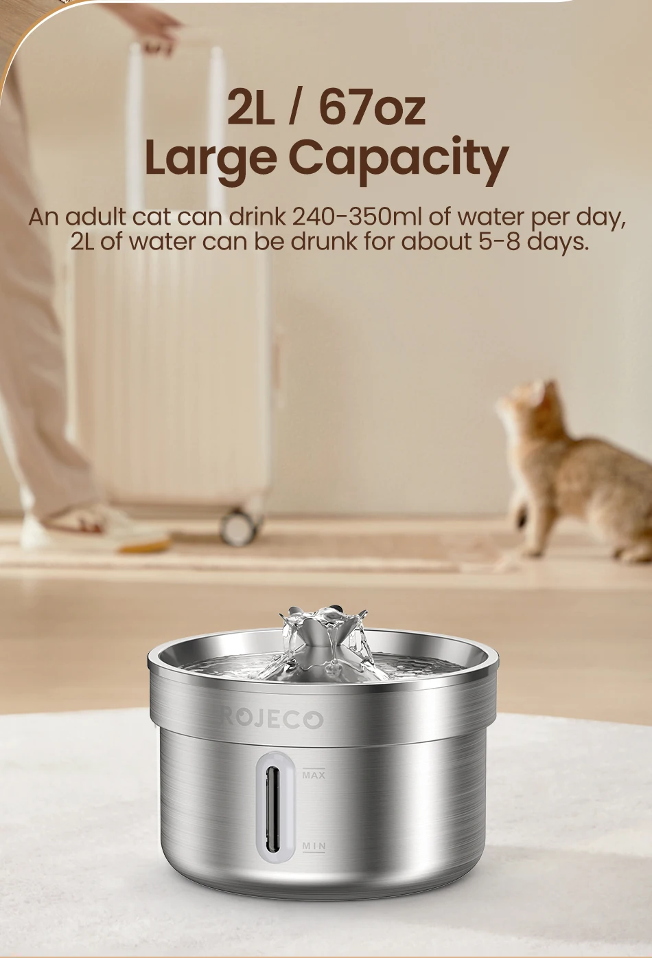 ROJECO Stainless Steel Pet Drinking Fountain Automatic Cat Water Fountain Smart Pet Water Dispenser for Dog Cat Drinking Supply