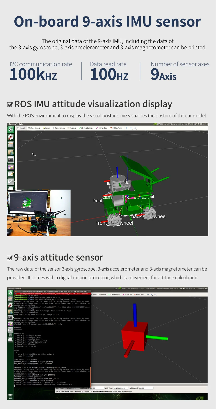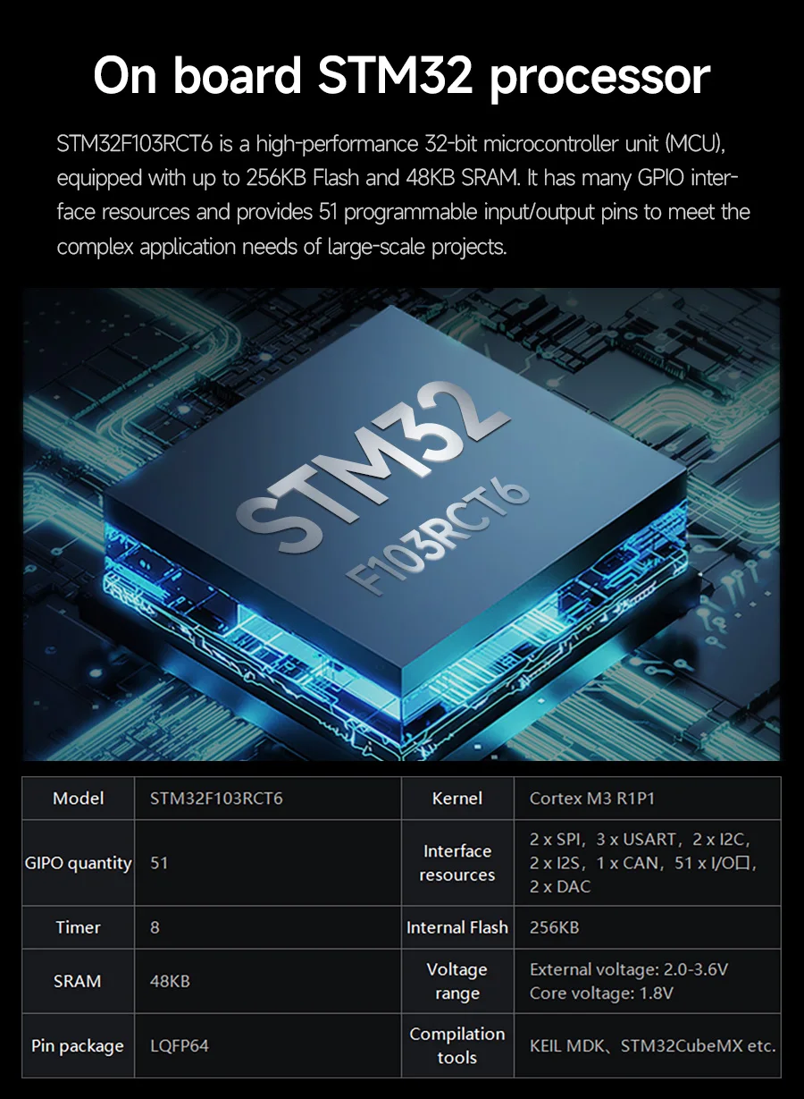 2.On board 9-axis IMU sensor, STM32 core control unit.