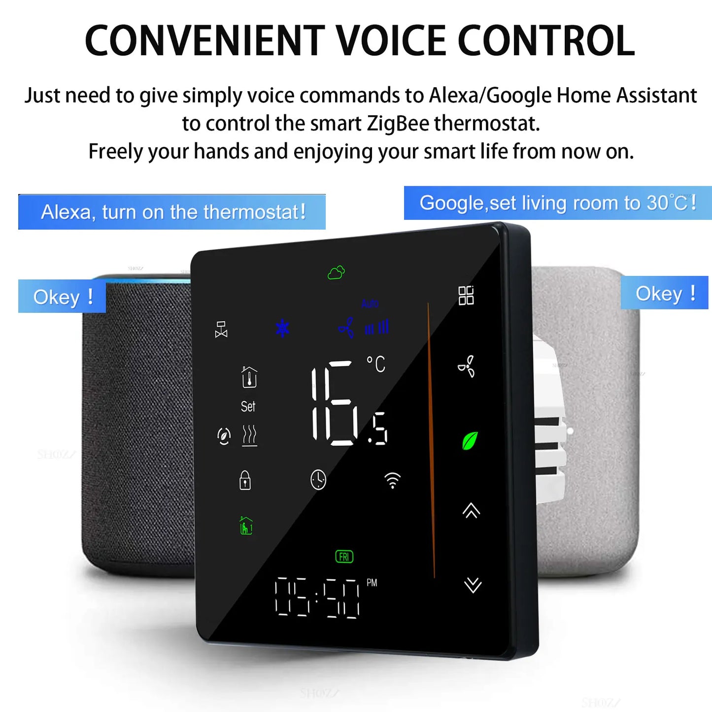 TUYA Zigbee&Wi-Fi 2/4 Pipe Fan Coil Room Thermostat - HVAC Temperature Controller For Heating And Cooling 12VAC 24VAC 95-240VAC.For Fan Coil Unit Work with Alexa Google Home YANDEX Alice