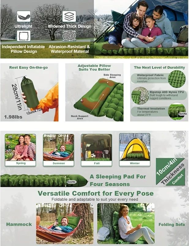 Ultralight & Thickened TPU Inflatable Sleeping Mat for Camping, Waterproof & Portable