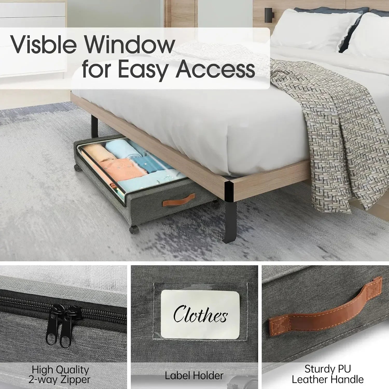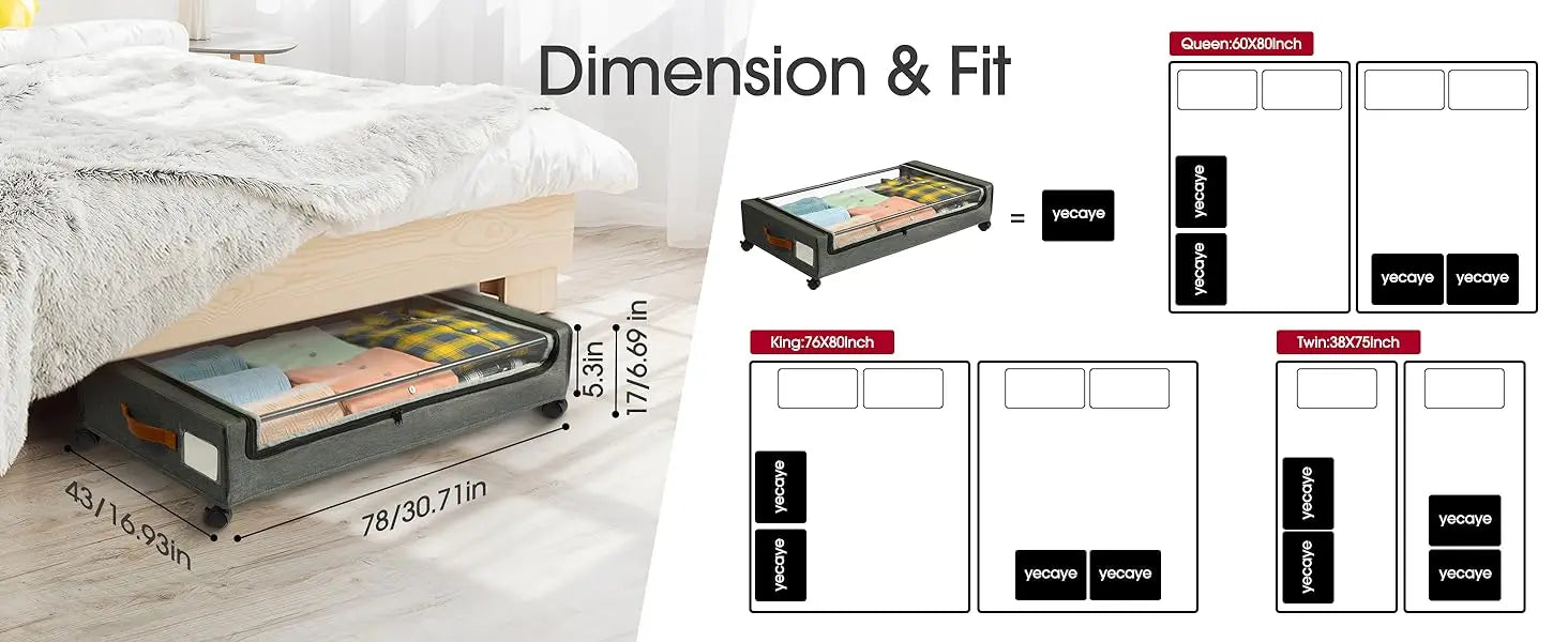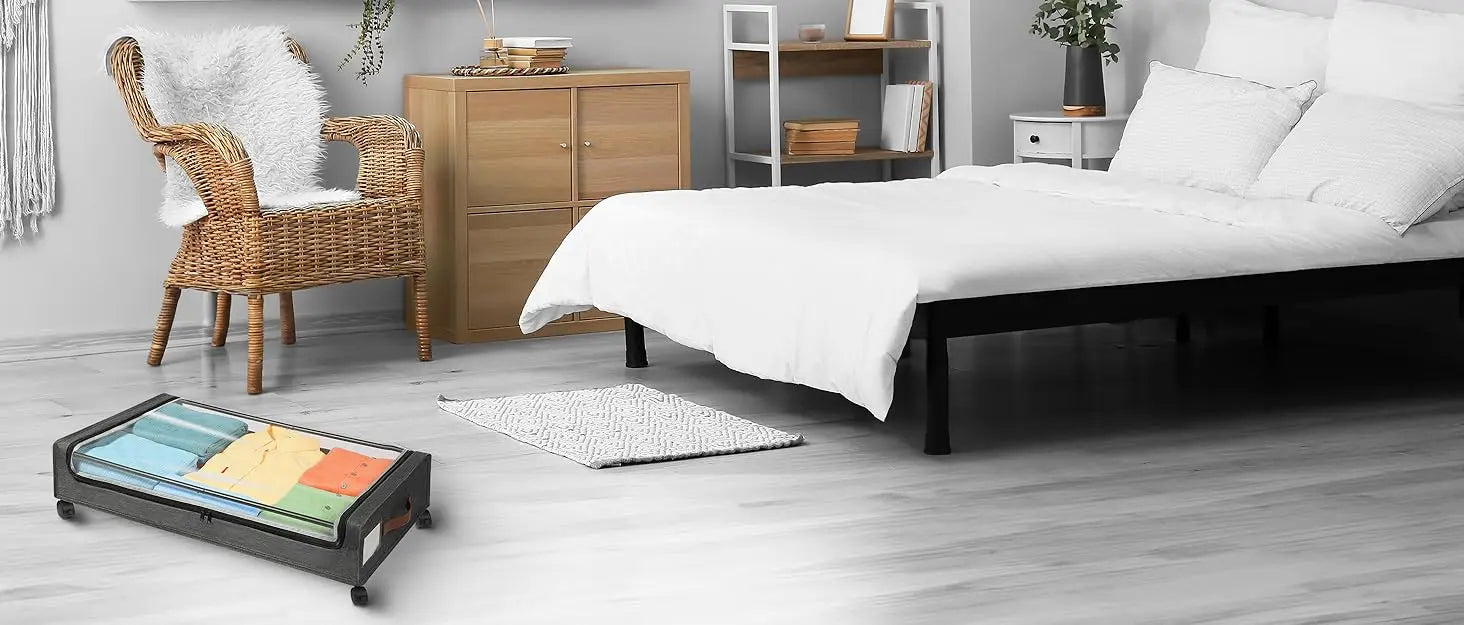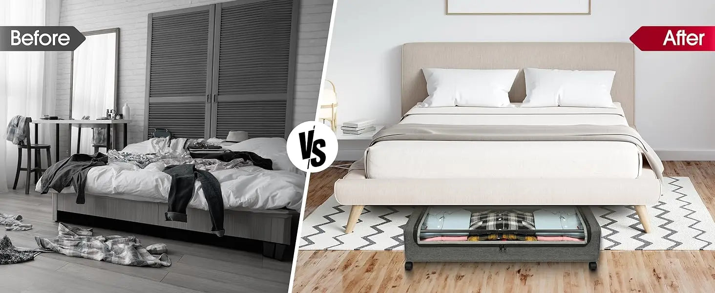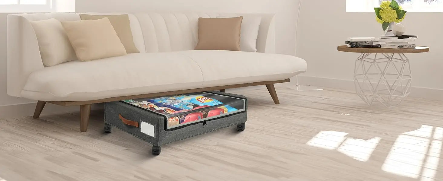 Large-capacity under bed storage containers can meet daily storage needs, can store a variety of items, such as seasonal clothes, blankets, shoes, toys, snacks, books, etc.