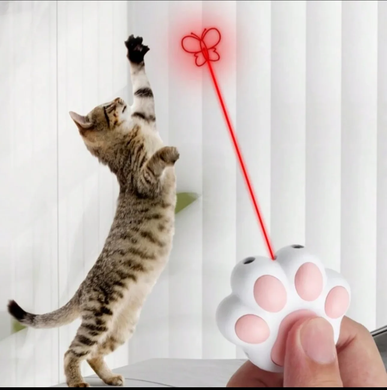 Usb Rechargeable Lovely Cartoon Cat Paw Shaped Laser Pointer Cat Toy With Adjustable Patterns And 3 Light Sources, Keychain