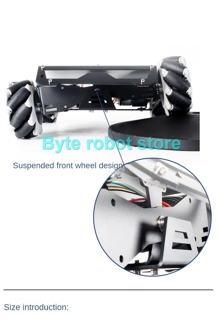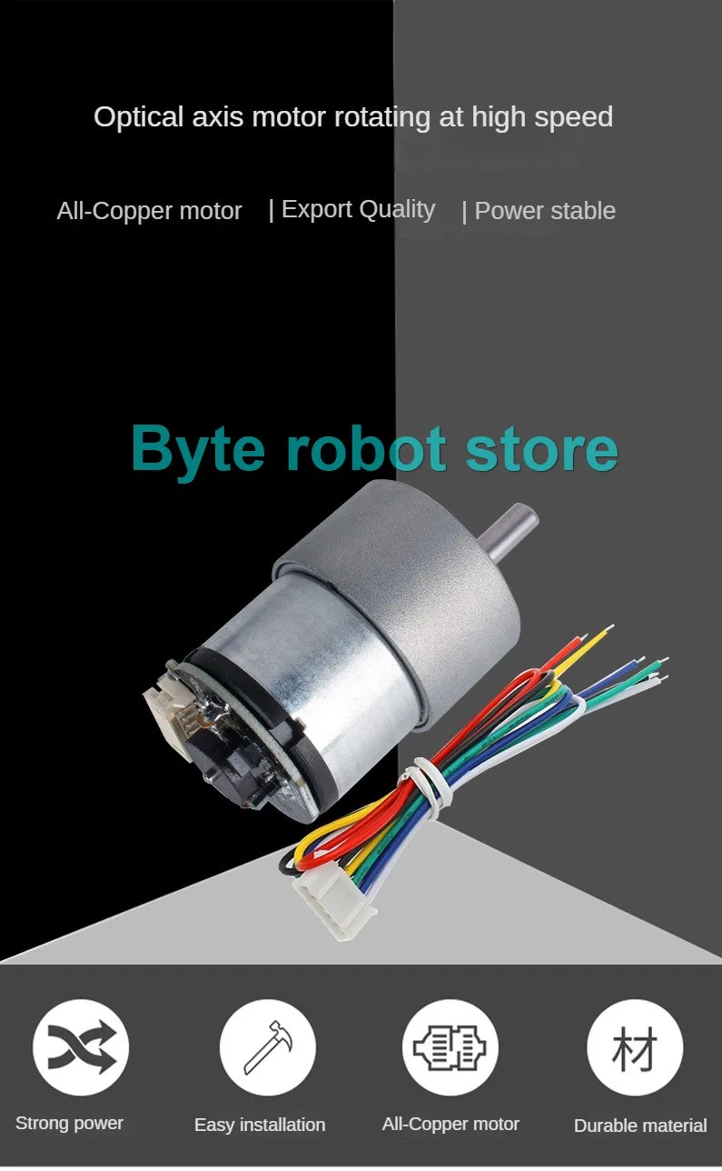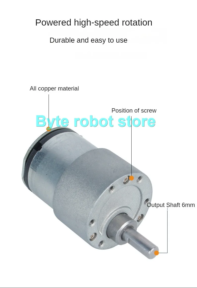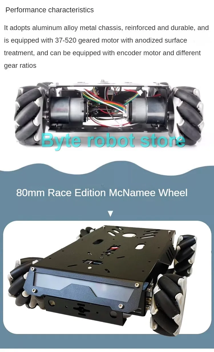 Aluminum alloy metal chassis, reinforced and durable, surface anodized treatment equipped with 37-520 gear motor, optional encoder motor and different tooth ratio