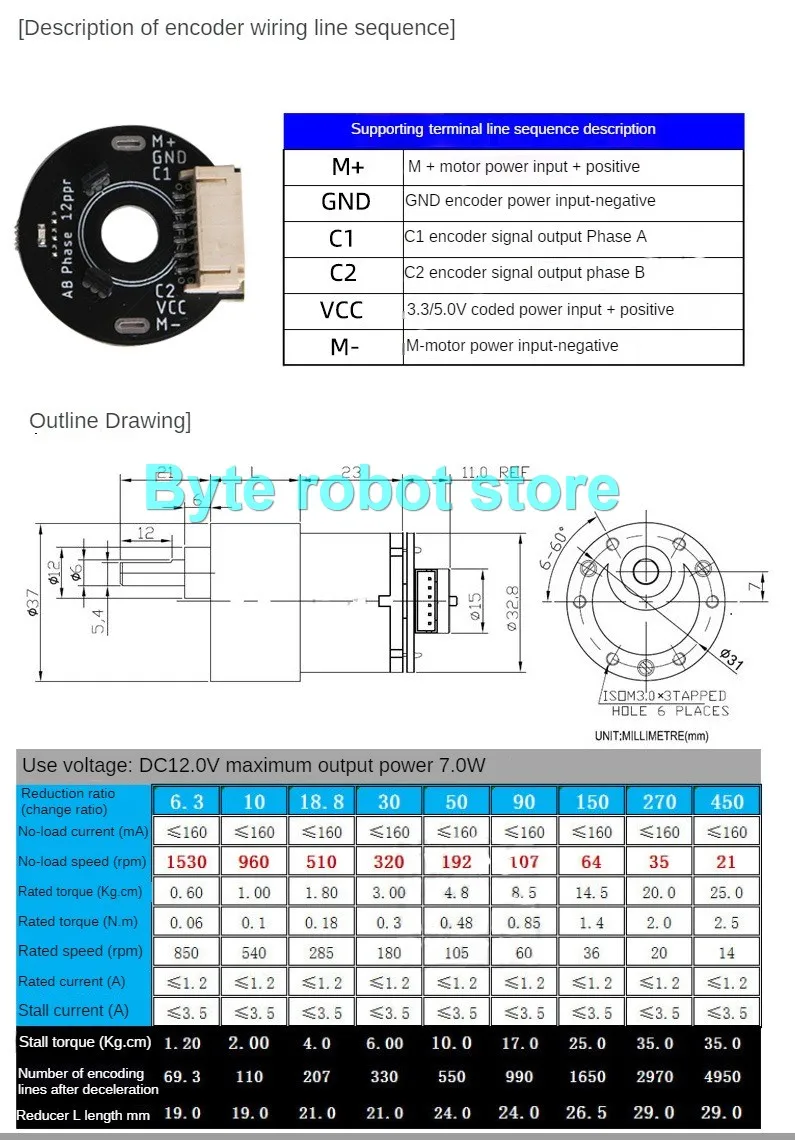 The smaller the reduction ratio, the faster the motor speed and the less load.
