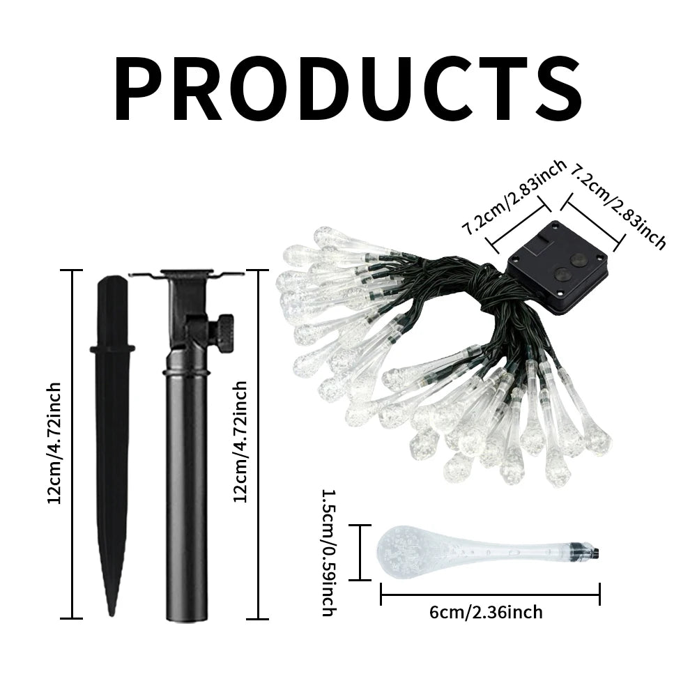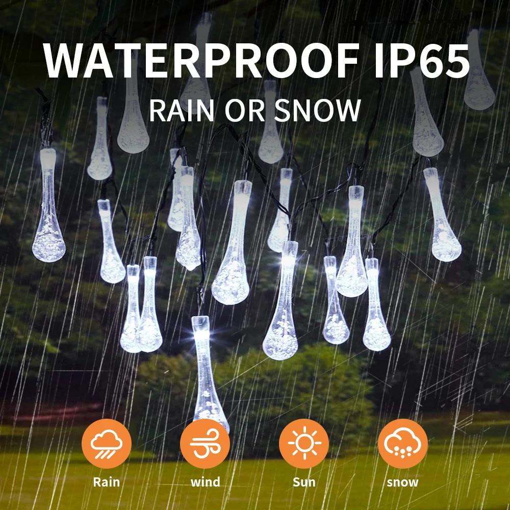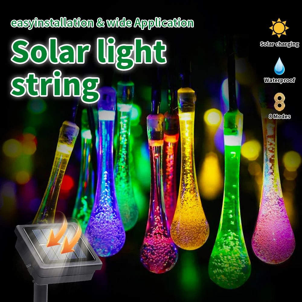 Water droplets Solar String Lights 5/7M Waterproof Outdoor Decoration garland Fariy Lights Christmas Wedding party Garden