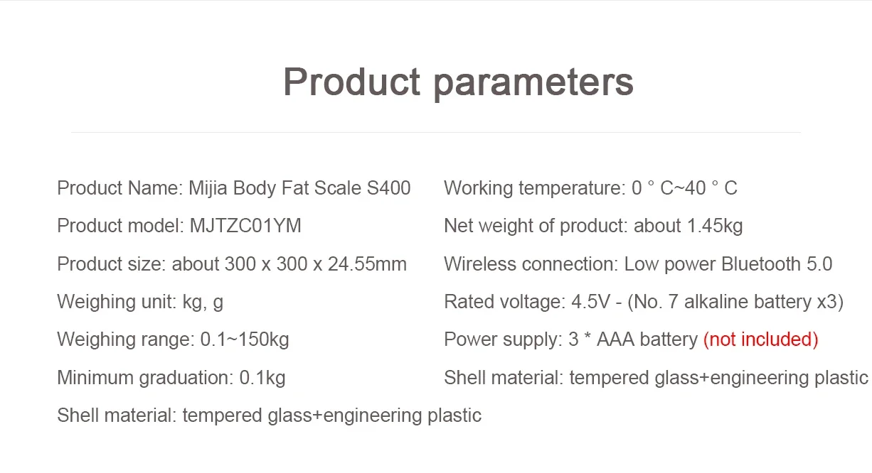 2.Need at least 100g to start the Mijia Body Fat Scale S400.